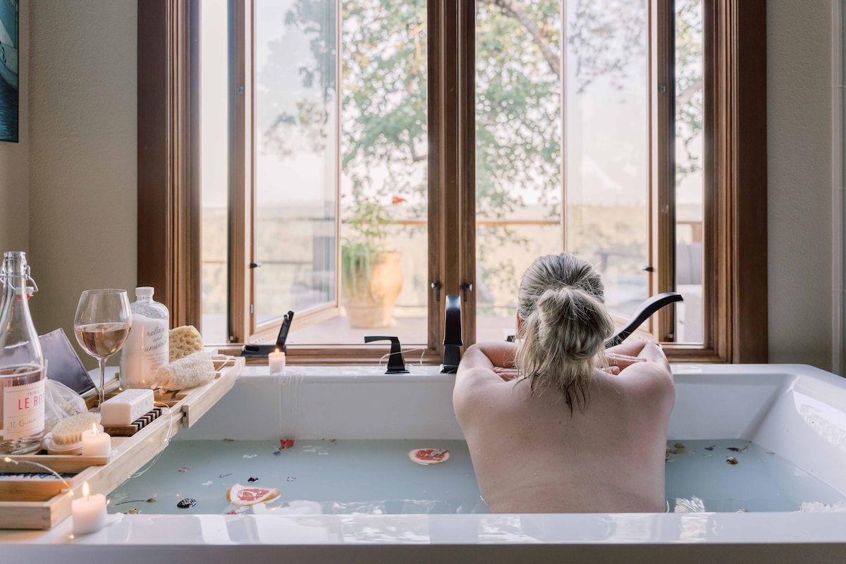 Atsipalaiduokite nuo miesto šviesų ir miegokite po didingais senais Trejybės apygardos kedrais. Šiame prabangiame liukso numeryje, esančiame tarp dviejų kalnų keterų, yra viskas, kad jūsų atostogos jaustųsi kaip namie. Moderni virtuvė, SPA vonios kambarys ir vaizdingas lauko patrauklumas. Mėgaukitės skaitydami knygą po vaismedžiais arba pasinerkite į netoliese esantį upelį.