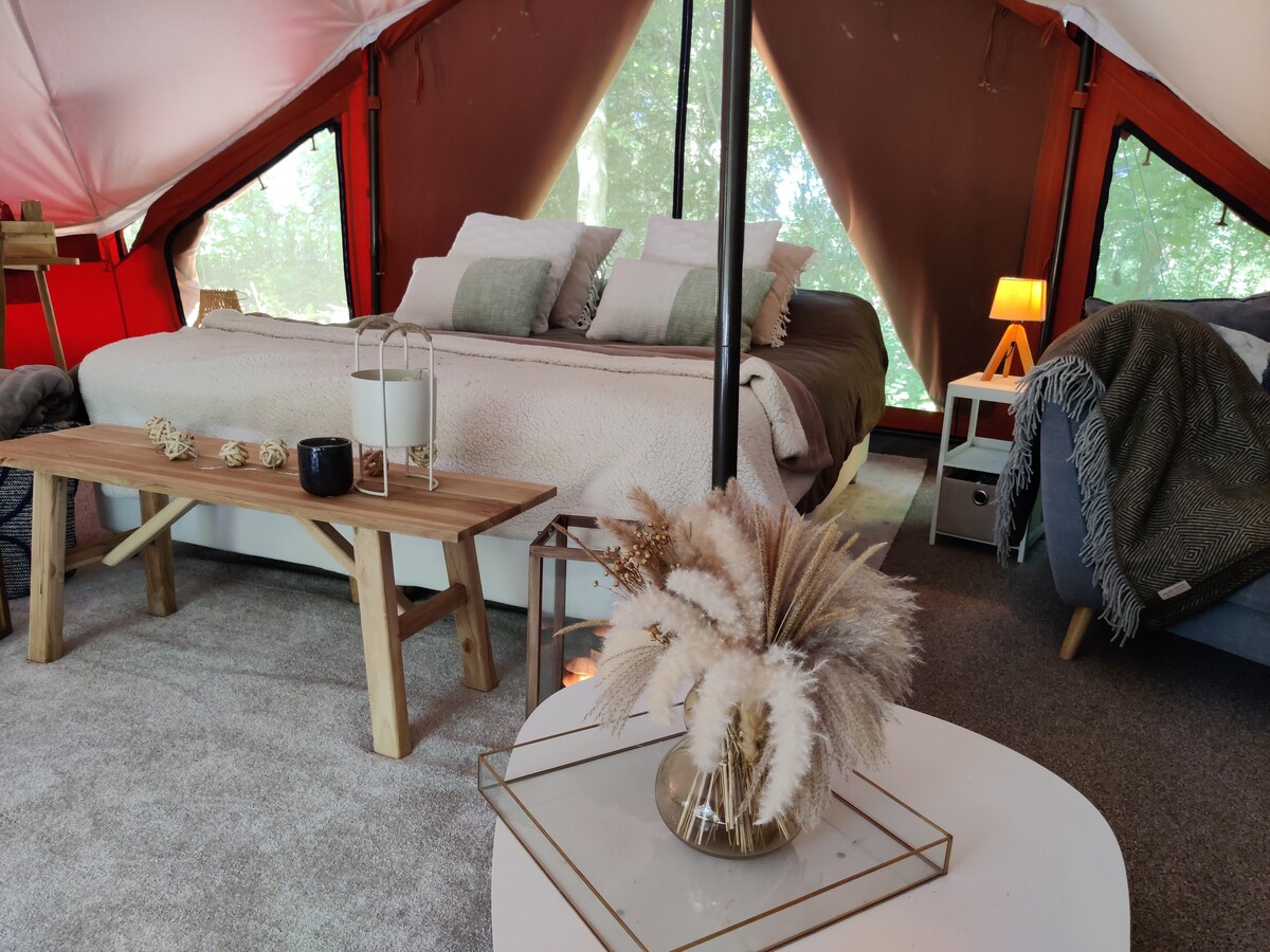 Patirkite stilingą glempingą Ardėnų miške. 2 žmonėms, vertinantiems gamtą ir komfortą. Su jaukia lova, panoraminiu langu, privačia lauko poilsio zona ir privačiu vonios kambariu su dušu. Medžių apsuptyje miegate po žvaigždėmis ir atsibundate nuo paukščių giesmės. Puikiai tinka išjungti, atsipalaiduoti ir mėgautis ramybe. Mėgaukitės ypatinga pertrauka kaime – toli nuo kasdienio gyvenimo, bet su viskuo, ko jums reikia.
