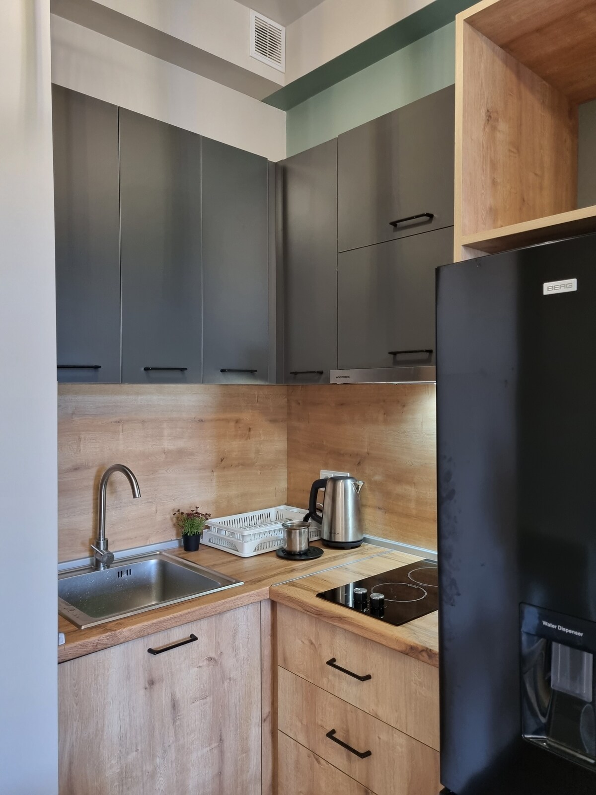 Ši šviesi ir elegantiška studija yra pilnai įrengta ir įrengta, kad užtikrintų malonią viešnagę. Į ją įeina: Pilnai įrengta virtuvė (šaldytuvas, viryklė, mikrobangų krosnelė ir indai). Modernus vonios kambarys su dušu Plokščiaekranis televizorius ir didelės spartos Wi-Fi Yra nemokama automobilių stovėjimo aikštelė ir garantuotas saugumas