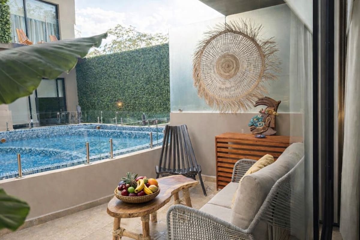 🎉Įgyvendinkite svajonę Tulume!🌴 Pabėkite į šį boho-chic loftą išskirtinėje Tulumo ADOROS bendruomenėje. 💎✨ Įsivaizduokite save ilsėdamiesi prie savo privataus baseino arba stebuklingai pasinerkite į krištolo skaidrumo cenote žingsnius nuo savo durų 🚪 ✨💦Ši elegantiška erdvė skirta maksimaliam atsipalaidavimui su visais patogumais, reikalingais nepamirštamai išvykai.🧘♀️ Iki karščiausių paplūdimio klubų vos kelios minutės!🏖️ Leiskite mūsų konsjeržui parinkti tobulą nuotykį✌️Užsisakykite pabėgimą į rojų dabar! ✨