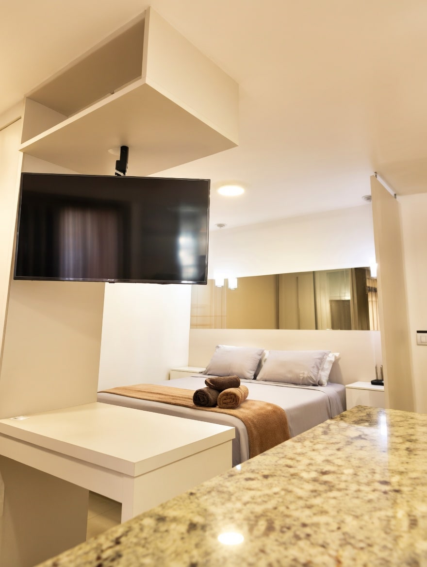 Norite apsistoti žavingame, gerai įrengtame lofte, kuriame tikrai atsipalaiduosite ir jausitės kaip namie? Ši erdvė puikiai tinka jums. Aplinka su oro kondicionieriumi, virtuvėle su virykle, puodais ir keptuvėmis, indais, stalo įrankiais ir stiklinėmis. Šaldytuvas ir mikrobangų krosnelė taip pat yra virtuvės dalis. Dvigulė lova su pagalvėmis ir patalyne su antklode Vonios kambaryje yra dušas ir vonios patalynė Svetainė su sofa ir išmaniąja televizija. Vaizdas į kondominiumų gyvenamąją erdvę ir restoranus. ;)