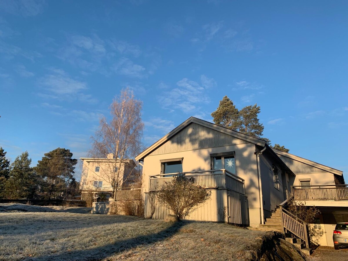 Sveiki atvykę į mūsų gražią Drevviken vilą Stokholmo priemiestyje. Vila yra 67 kvadratinių metrų ploto ir turi didelę terasą aplink didžiąją vilos dalį. Jūs galite mėgautis mūsų sodu, nedideliu privačiu paplūdimiu ir pontonu. Aplink namą yra trys valgomosios zonos, tinkamos nuostabiems pusryčiams ar vakarienėms. Maloniai kviečiame mėgautis visais švedų keturiais metų laikais. Stokholmas taip pat pasiekiamas (maždaug už 20 minučių kelio) viešuoju transportu!