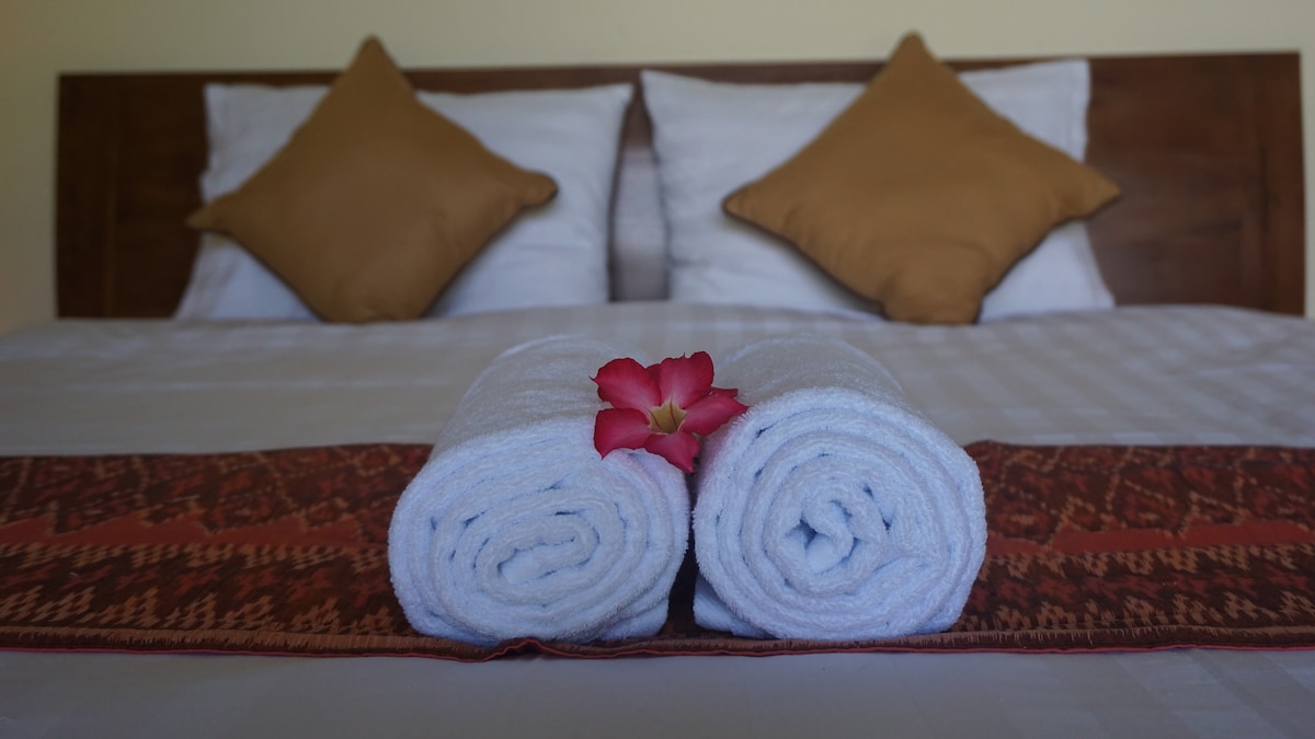 Mūsų erdviuose ir patogiuose kambariuose yra dvigulė lova, karštas ir šaltas dušas,Wi-Fi prieiga,ventiliatorius ir oro kondicionierius . Įskaičiuoti pusryčiai. Esame vos už 700 m nuo Beždžionių miško ir už 10 minučių kelio pėsčiomis nuo Ubudo centro. Aš taip pat teikiu taksi paslaugas, kad galėtumėte pasiimti,išlaipinti ir vienos dienos keliones aplink Ubudą: Ryžių terasa Šventojo vandens šventykla Kavos plantacija Krioklio dramblių urvo šventykla Saulėtekio žygis Vandens plaukiojimas Dviračių ekskursija Maisto gaminimo pamoka Ir t. t. Paprašykite daugiau informacijos:)