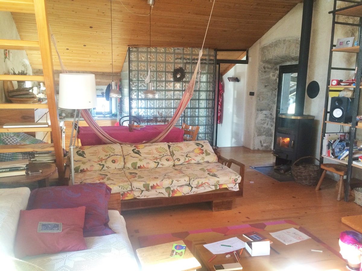 "Una casa speciale" yra tiesiog ypatinga vieta. Kambarys yra didelis ir yra atvira erdvė su dvigule lova pirmame aukšte ir mezoninu su dviem viengulėmis lovomis. Virtuvė, veranda ir valgomasis yra bendros patalpos(dažniausiai su manimi ir kartais su tais, kurie nuomoja kambarį šalia pirmo aukšto vaikų vakarėliams ar šokių pamokoms..).Jūs tikriausiai būsite vieni dažniausiai, bet jei jums nepatinka susitikti su žmonėmis tai ne vieta jums!