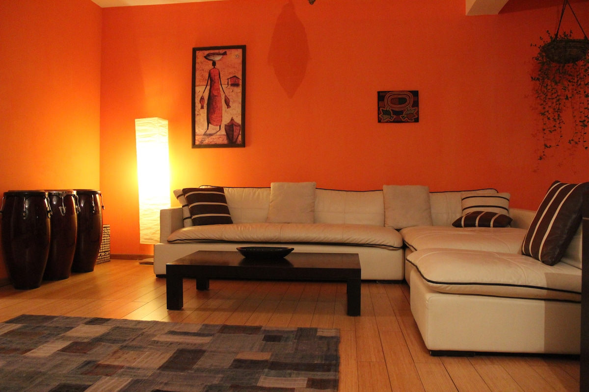 Stilingas ir jaukus butas su boho prisilietimu, puikiai tinkančiu skaitmeniniams klajokliams, poroms ir šeimoms. Mėgaukitės pilnai įrengta virtuve su espreso baru, turinio kūrėjo darbo vieta su profesionaliu apšvietimu ir karališko dydžio lova ramioms naktims. Erdvėje taip pat yra iki 7 viengulių lovų, todėl ji puikiai tinka grupinėms viešnagėms arba lanksčioms miegojimo vietoms. Nesvarbu, ar atvykstate dirbti, atsipalaiduoti ar tyrinėti, šie namai suteikia komfortą ir įkvėpimą. Wi-Fi: 99114159