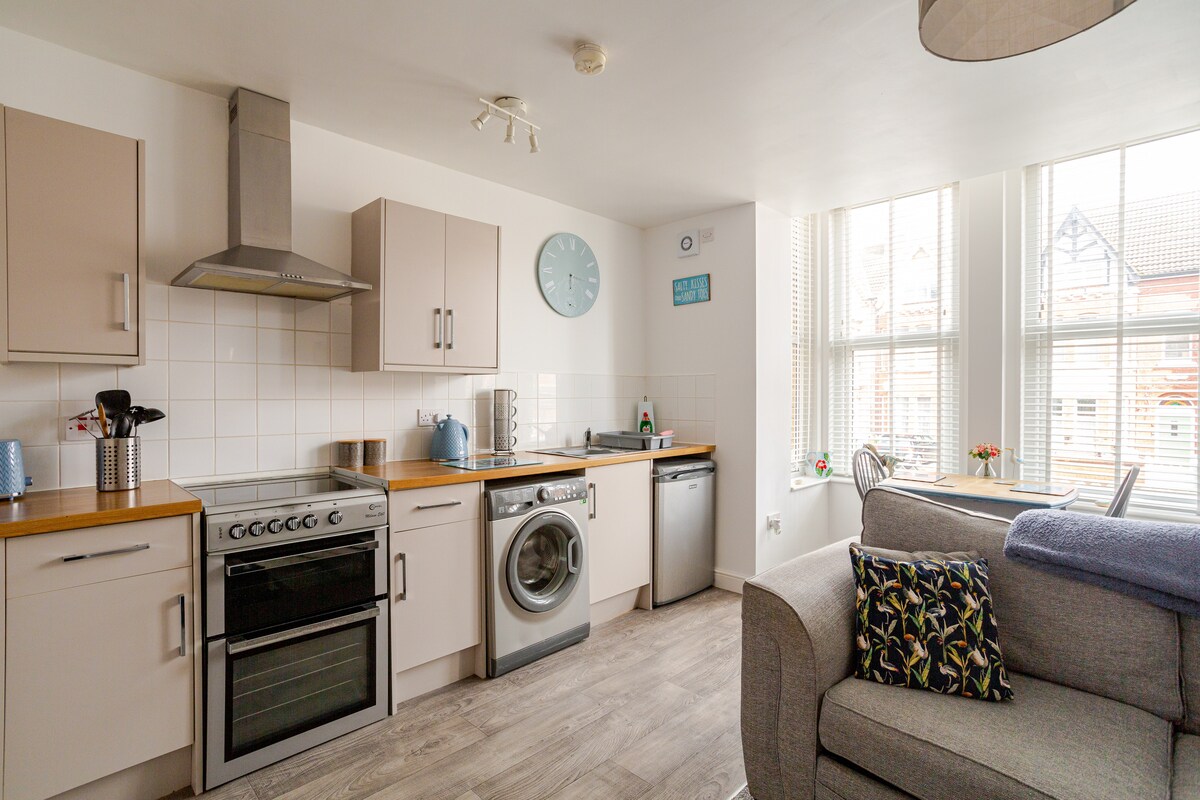 Gražus stilingas butas pirmame aukšte. Nuostabi vieta netoli Bridlington North paplūdimio, parduotuvių ir restoranų - visa tai vos už kelių minučių kelio pėsčiomis. Tai puiki vieta tiesiog nuvykti į paplūdimį arba pasivaikščioti promenada arba kaip vieta tyrinėti nuostabią Jorkšyro pakrantę. Iš poilsio lango atsiveria vaizdas į jūrą iš šono.