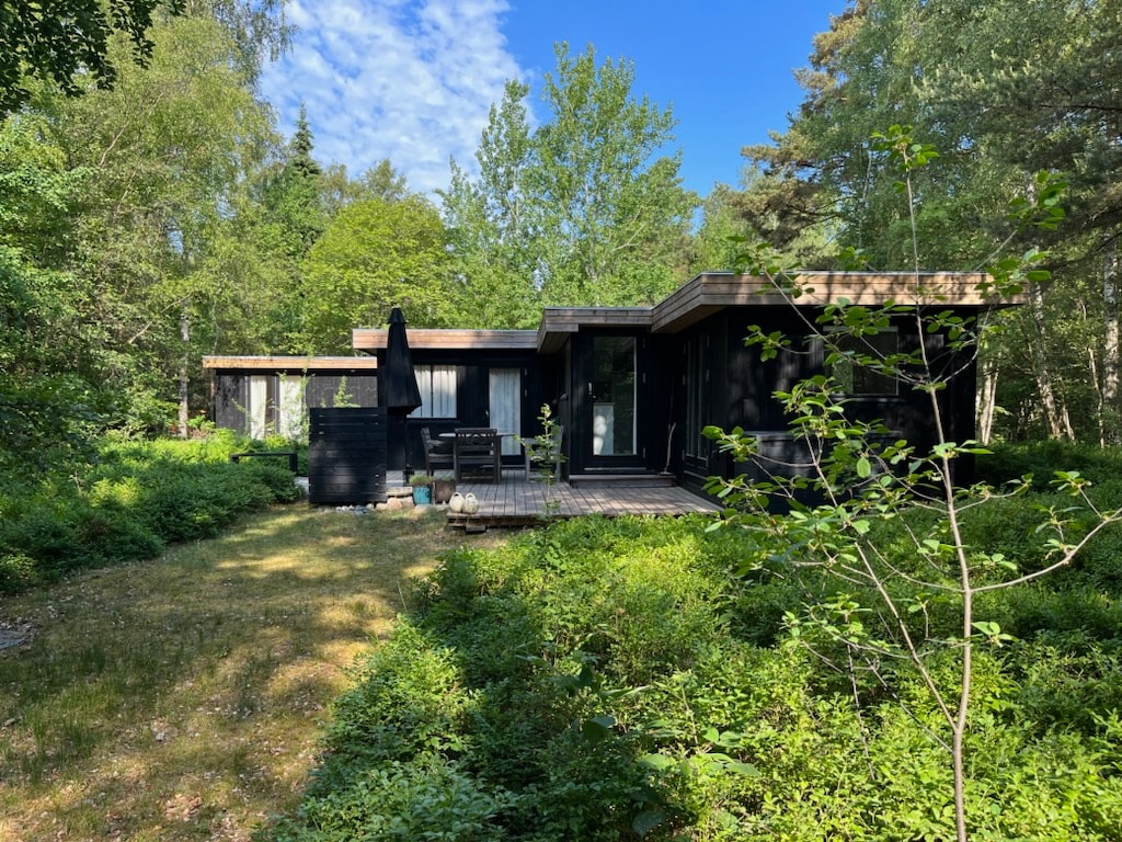 Namas yra klasikinis 57m2 medinis namas, esantis ramaus žvyrkelio gale. Tai šalia miško ir jūs patirsite turtingą laukinę gamtą sode. Sklypas yra 1200m2 ploto, jį daugiausia dengia mėlynžiedžiai augalai ir laukinė gamta. Sukurta erdvė žaisti ant pievelės priešais namą ir yra badmintono komplektai, taip pat kita žaidimų įranga. Vasaros mėnesiais gali būti uodų, todėl nepamirškite apipurkšti uodų. Svetainėje, virtuvėje ir viename kambaryje ant durų yra tinklelių nuo uodų.