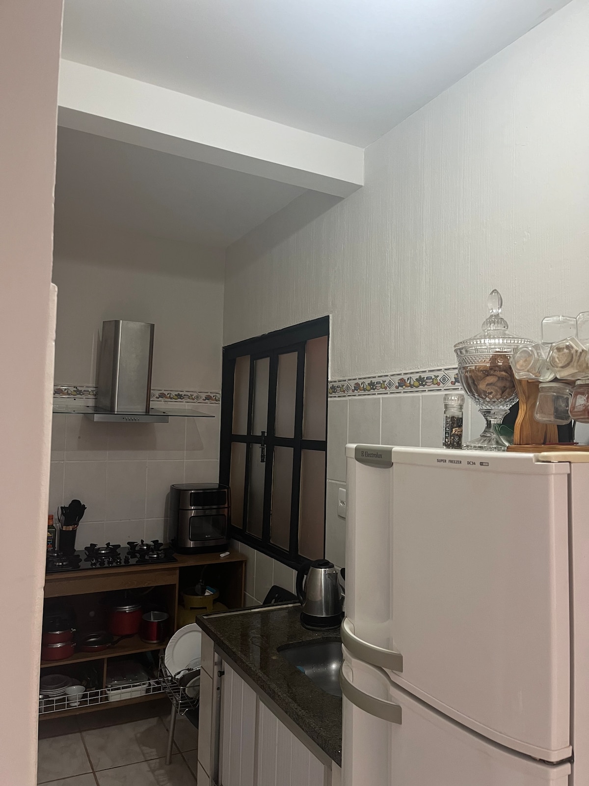 cozinhas completas geladeira, freezer, cervejeiro, fogão industrial, a lenha, cooktop, utensílios, forno elétrico, churrasqueira ,filtro de água Banheiros feminino: um chuveiro elétrico, dois sanitários Banheiro masculino: um chuveiro elétrico, um sanitário e um mictório STARLINK Televisão Conjunto de mesas com cadeiras 3 quartos grandes e 1 pequeno com camas e colchões 1 suíte com banheira de hidromassagem, cama de casal e sacada. Capela Deck suspenso Gramado balanços redes sinuca