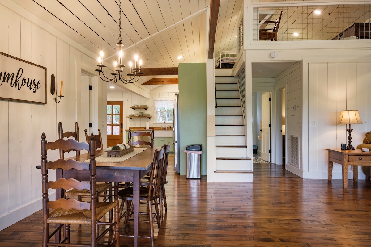 Atsipalaiduokite stilingai šioje modernioje trobelėje, esančioje tarp Helen ir Dahlonega. Netoli vyno daryklų, žygių pėsčiomis, žvejybos ir apsipirkimo. Mėgaukitės privatumu, erdvia terasa ir prabangiais baldais. Puikiai tinka dviems poroms arba šeimai, kuriuose yra du karališki miegamieji su vonios kambariais, televizoriais ir dideliais langais. Itin ilgos dviaukštės lovos patogiai miega suaugusiems arba paaugliams. Grįstas kelias ir įvažiavimas leidžia lengvai pasiekti būstą. Tobula kelionė į Šiaurės Džordžiją! STR-23-0073 Verslo licencija 4767