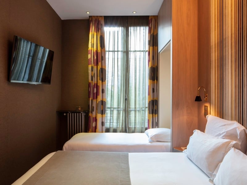 Standartinis dvivietis kambarys kiemo pusėje su atskiru vonios kambariu Regent 's Garden **** viešbutyje, Astotel 4 žvaigždučių butikiniame viešbutyje, idealiai įsikūręs pačioje 17-ojo Paryžiaus rajono širdyje, netoli Triumfo arkos - Eliziejaus laukų, Palais des Congrès - Porte Maillot ir viešojo transporto. Registratūra dirba visą parą. Galimybė nemokamai užstatyti bagažą visą dieną atvykimo ir išvykimo dienomis.