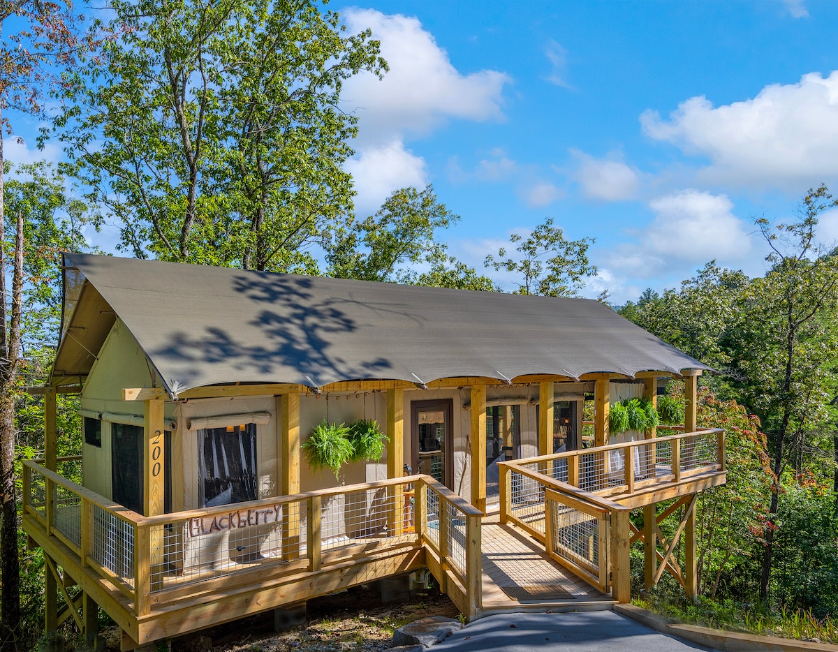 BRAND NEW - The Dog Wood Glamping Tent is one of two accommodations at our boutique mountain camp, Wheat Creek Outpost, in the North Carolina mountains. It combines the serenity of nature with the comforts of a boutique hotel. Inside, you’ll find a full bathroom, heating and air, and kitchenette—everything you need for a relaxing and convenient stay. Whether your sipping morning coffee on the deck or unwinding under the stars, The Dog Wood offers a perfect blend of adventure and comfort.