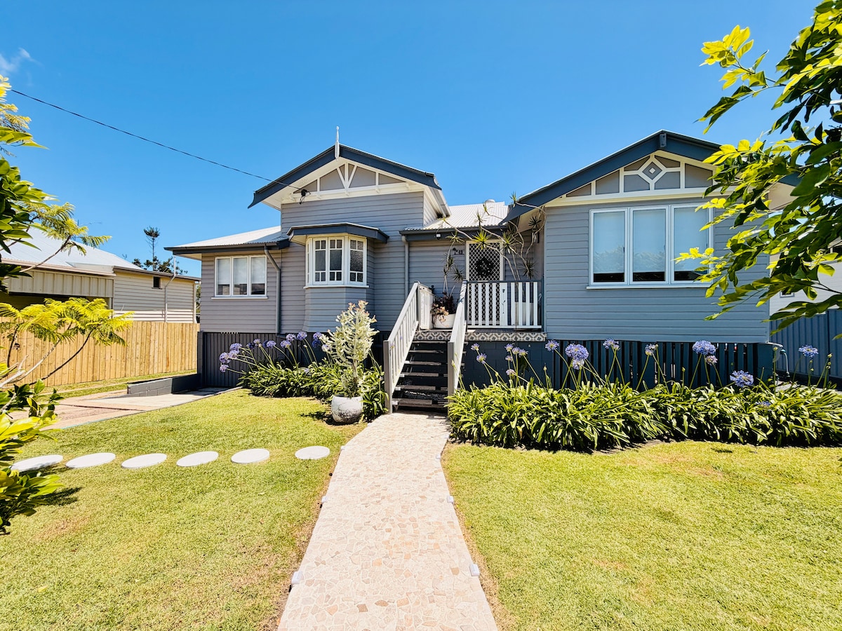 „Sublime beachfront Queenslander“ nuostabioje vietoje su didžiule terasa virš įspūdingų vaizdų į vandenį, oro kondicionieriumi, automobilių stovėjimo aikštele valtimis ir pėsčiomis iki kavinių ir restoranų. Idealiai tinka pačioje Urangano prieplaukos širdyje, kurioje yra 4 miegamieji, 3,5 vonios kambariai, vandenynas/paplūdimiai kitoje kelio pusėje, jūros brizai ir vaizdai į K'gari (Freizerio salą) ir prieplauką. Naujai atnaujinta erdvia terasa. Panoraminiai langai ir sulankstomos durys sukuria vidaus/lauko erdvę atsipalaiduoti ir mėgautis nuostabiais vaizdais bei jūros vėjeliu