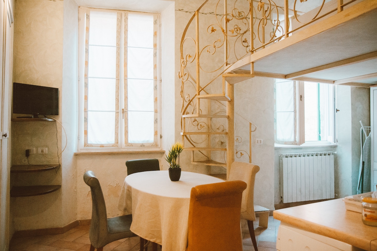 Naujai suremontuotas 25 kv. m butas istoriniame Urbino centre, akmens mėtymo nuo San Giovanni oratorijos. Puikiai tinka norintiems aplankyti idealaus miesto grožį. Apgyvendinimo vietą sudaro atvira erdvė su dvigule lova ir atskira vonia, vonios kambarys su dušu ir privatus 60 kv. m sodas su vaizdu į Doge rūmus ir Torricini. Patogumai: patalynė su pakeitimu kas 3 dienas, internetas, oro kondicionierius ir 24/7 pagalba nuotoliniu būdu. Maisto ruošimas negalimas.