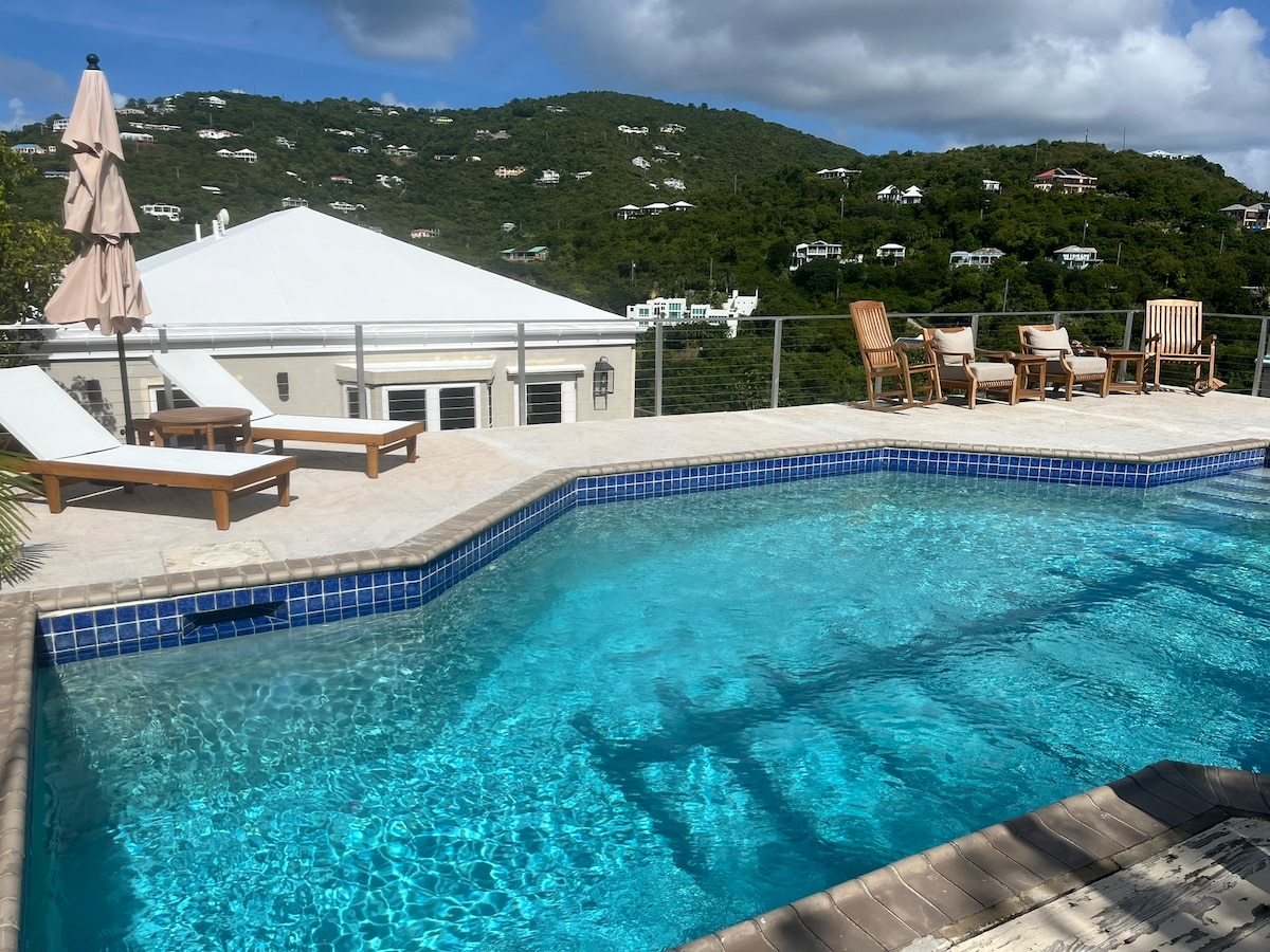 Mėgaukitės visiškai nauju, stilingu kotedžu su nuostabiu vaizdu! Centrinėje vietoje yra oro kondicionierius, Wi-Fi, baseinas ir generatorius. Iki paplūdimio mažiau nei 8 min., 2 min. iki pagrindinių maisto prekių, 12 min. iki restoranų ir Christiansted miesto centro. Yra privatus įvažiavimas ir automobilių stovėjimo aikštelė. Kas nors naujokas saloje yra puiki vieta nuvykti į skirtingas vietas ir būtiniausius reikmenis. Kotedžas yra ramiame rajone, kuriame yra daug lauko erdvės ir visiškai naujas baseinas su vaizdu į pietinę pakrantę.