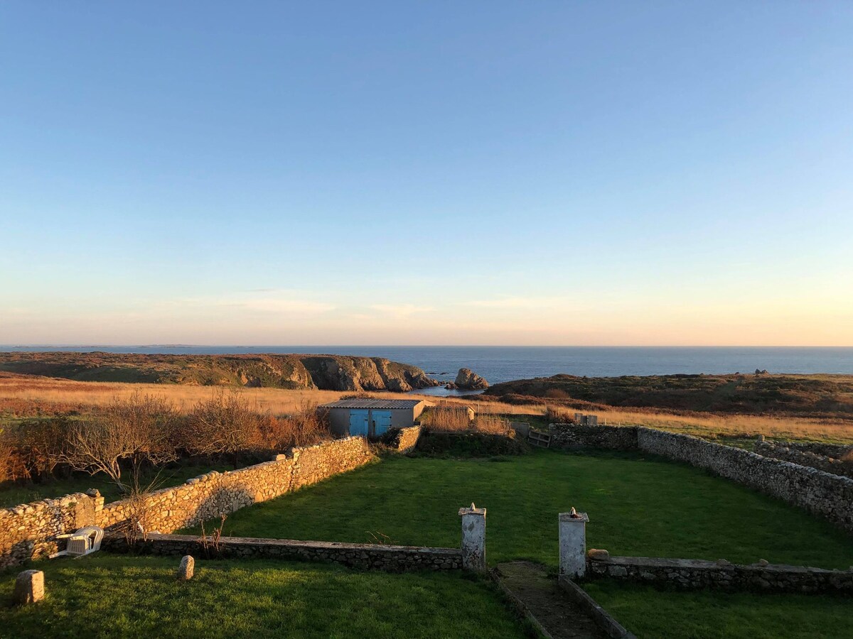 Tradicinis ouessantine namas, renovuotas senovinėmis medžiagomis. Žavingas kotedžas su puikios darbinės būklės dideliu atviru židiniu. Namas, iš kurio atsiveria vaizdas į natūralų slėnį su vaizdu į jūrą ir pagrindinį salos paplūdimį, visiškai nuošalus, be kaimynų su dideliu uždaru sodu (2000 m2). Terasa su vaizdu į jūrą.“