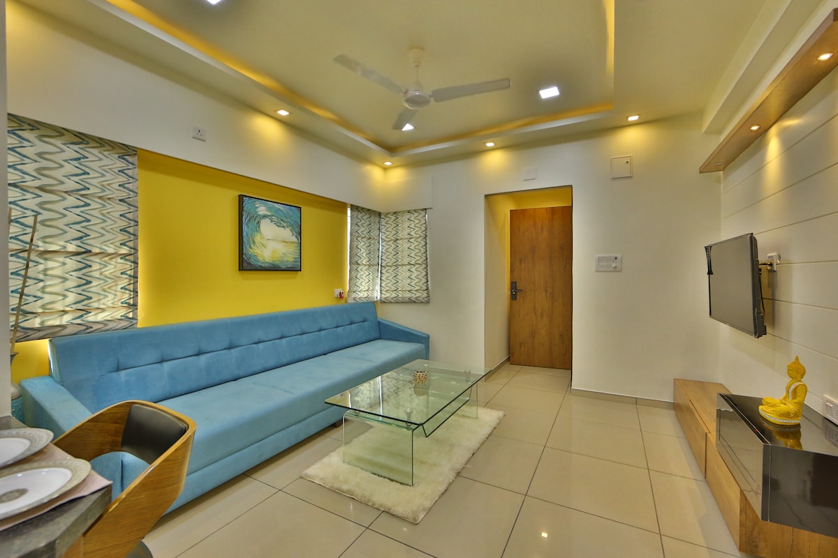 Atraskite prabangų gyvenimą mūsų 2BHK bute Alkapuri Vadodaroje. Kiekviename kambaryje yra televizorius ir oro kondicionierius, kad būtų užtikrintas maksimalus komfortas. Erdvioje svetainėje yra pliušinė 6 vietų sofa ir valgomasis stalas, puikiai tinkantis šeimos susibūrimams. Virtuvėje yra 4 degiklių dujinė viryklė, skalbimo mašina, džiovyklė ir indaplovė, užtikrinanti patogumą jūsų kasdieniame gyvenime. Mėgaukitės ramiu miegu ant 10 colių lanksčių čiužinių kiekviename miegamajame, derindami šiuolaikinius patogumus su jaukia šiluma