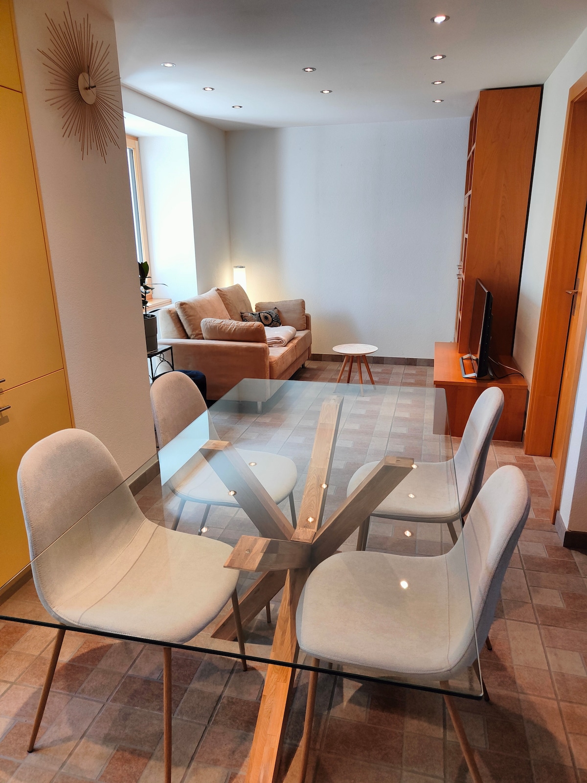 Praleiskite atpalaiduojančias atostogas Poschiavo centre. Mūsų mažas, bet jaukus butas siūlo jums kiekvieną komfortą ir tai yra už kelių žingsnių nuo aikštės. Šiuolaikinė virtuvė ir atviro plano svetainė kviečia pailsėti, o jūs galite mėgautis gražiu oru lauke po pavėsine arba su kepsnine. Žaidimų aikštelė yra vis-à-vis. Kadangi viršutiniame aukšte gyvename su 4 vaikais ir šunimis, jei ko nors prireiktų, visada yra kas nors.