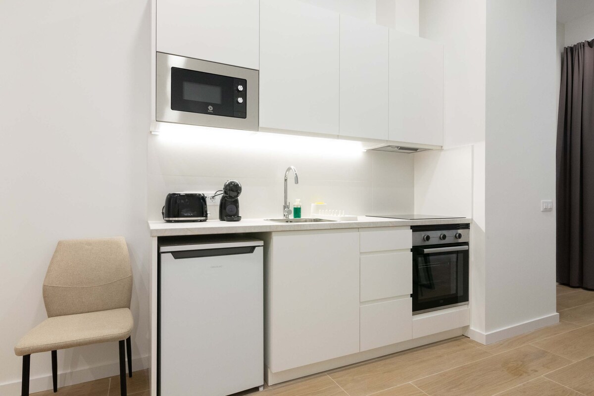 Gražus 50m2 butas trečiame istorinio ir saugomo pastato aukšte be lifto. Su aukštomis lubomis ir dideliais langais, kurie leidžia būti daug šviesos grindys, jis yra sudarytas iš erdvios svetainės ir integruotos virtuvės, visiškai atvira. Svetainėje rasite televizorių su Netflix ir WIFI, idealiai tinka atsijungti po ilgos dienos. Virtuvė pilnai įrengta (keramikinė kaitlentė, šaldytuvas, mikrobangų krosnelė, skalbimo mašina), jei pageidaujate valgyti namuose. Jame yra visi reikalingi virtuvės reikmenys, taip pat skrudintuvas, kapsulinė kavos virimo aparatas, sulčiaspaudė ir virdulys. Didelis miegamasis su dvigule lova (135 cmx190 cm) ir dideliu vonios kambariu su dušu ir viskuo, ko reikia, pvz., rankšluosčių rinkiniu, plaukų džiovintuvu, šampūnu ir vonios geliu. Kelioninė lovelė galima nemokamai pagal pageidavimą. Pastate nėra bendrų erdvių. Priimame svečius asmeniškai, mielai priimame svečius ir pateikiame išsamią informaciją apie butą bei miestą. Norime, kad jaustumėtės kaip namie! Mielai patarsime ir išspręsime visas problemas prieš viešnagę ir jos metu. Kai būsite mūsų svečiai, būsime pasiekiami, jei reikės. Jokių problemų - praneškite mums apie savo nuogąstavimus ar bet kokias kitas užklausas, kurias galime išspręsti mobiliuoju telefonu. Kalbame ispanų, anglų, italų ir prancūzų kalbomis. Įsikūręs istoriniame Valensijos centre, už kelių metrų nuo daugelio aktualiausių ir turistinių miesto vietų, tokių kaip Plaza de La Virgen (365 m), Plaza de La Reina (210 m), Katedra (200 m), La Lonja de la Seda ir Centrinis turgus (200 m). Jūs gyvensite Valensijos širdyje, kupinoje gyvenimo ir judėjimo, galėsite mėgautis miesto žavesiu, jo gatvėmis, paminklais ir linksmu gyvenimu. Nuostabi vieta leidžia mums būti gerai sujungti, visi transportas eina per Plaza de La Reina, kur jie veža mus, pavyzdžiui, į mokslų ir menų miestą arba į Valensijos paplūdimį. Ėjimas pėsčiomis ar dviračiu yra puikus variantas, nes viskas yra netoli grindų. Jei atvykstate automobiliu, vos už 200 m yra viešoji aikštelė La Plaza de la Reina, pačioje miesto širdyje. Ramus ir tuo pačiu metu rasite visą miesto gyvybingumą. Mielai jums patarsime.