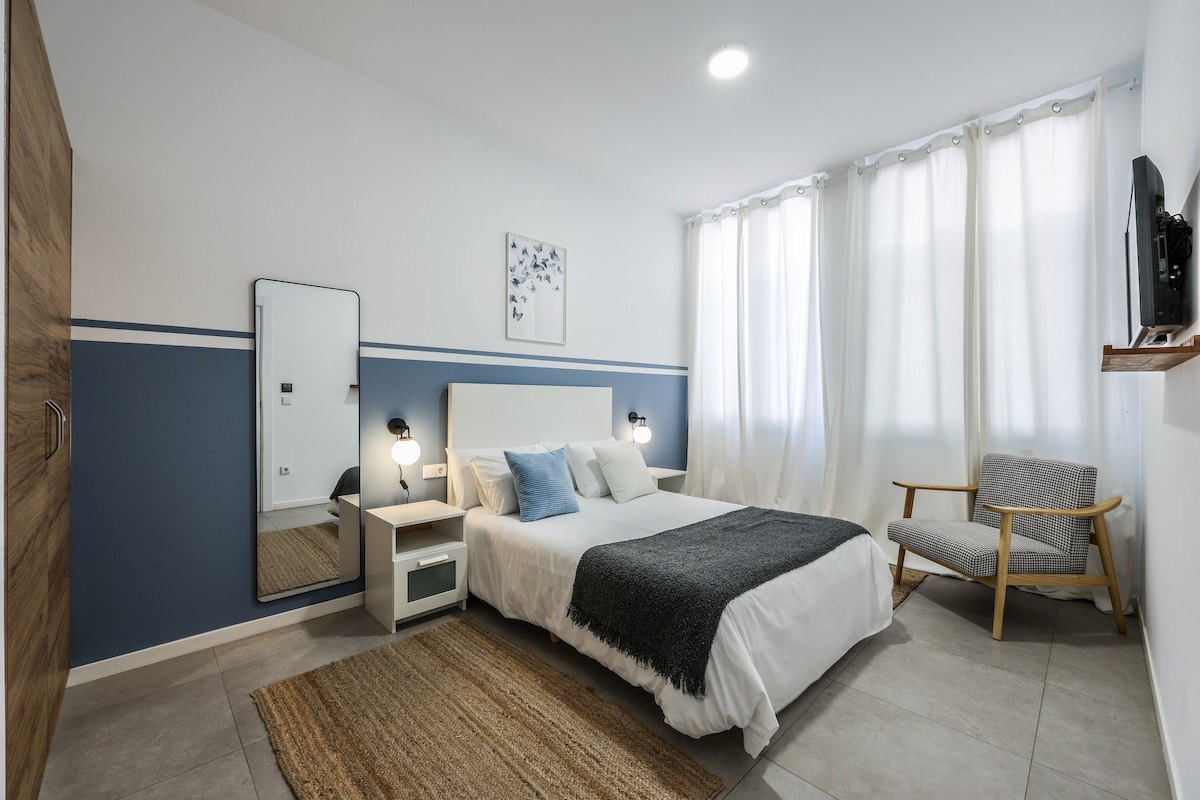 Apartamentų viešbutyje Valensijoje yra 1 miegamasis(-iai) ir telpa 4 žmonės.<br>Apgyvendinimas 34 m².<br>Jame yra liftas, skalbimo mašina, seifas, interneto prieiga (Wi-Fi), plaukų džiovintuvas, centrinis šildymas, oro kondicionierius, 1 televizorius, palydovinė televizija (kalbos: ispanų, anglų).<br>Atviro plano virtuvėje su keramine virykle yra šaldytuvas, mikrobangų krosnelė, indaplovė, indai/stalo įrankiai, indai/viryklė, kavos aparatas, skrudintuvas ir virdulys.