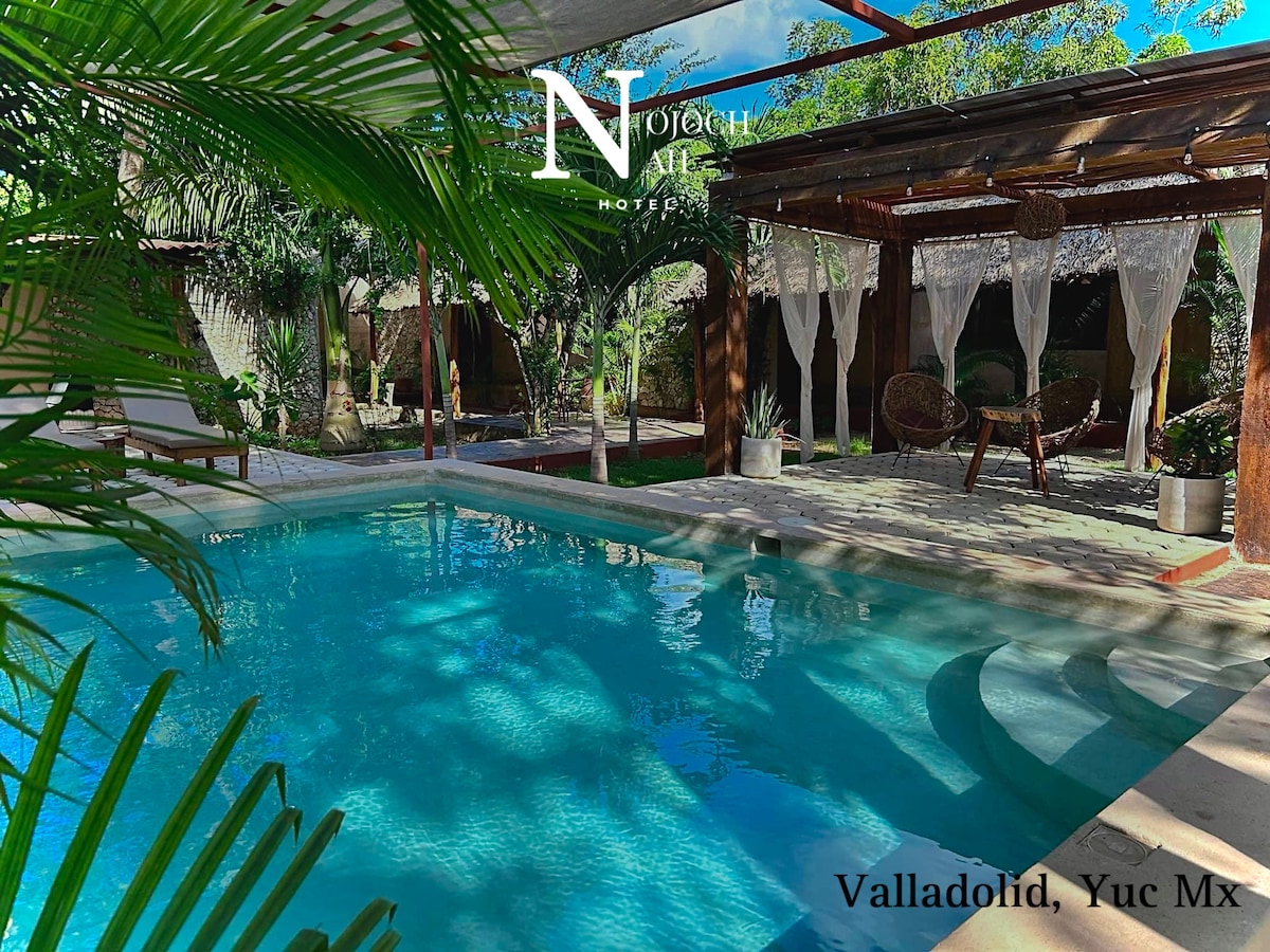 Mes įsikūrę gražiame Valjadolido Jukatano mieste, vos už 5 minučių kelio nuo buvusio San Bernardino de Sienos vienuolyno ir vienuolynų kelio, už 10 min. kelio nuo centrinio parko, o Chichén-Itzá yra už 40 km nuo mūsų įstaigos. Mes siūlome Jums gražias patalpas ir patogius kambarius, taip pat ramybę poilsiaujant ir mėgaujantis diena prie baseino, užsisakyti ir gyventi šį potyrį.