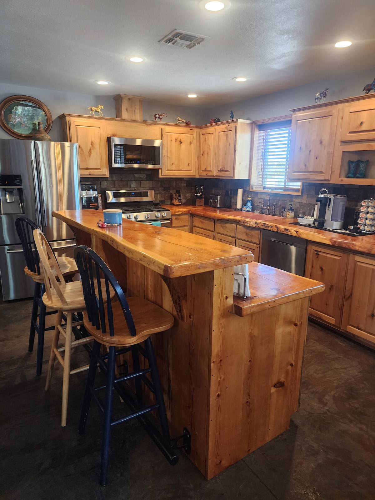 Mūsų trobelė yra 1 akro aptvertos žemės parkuose, AZ, ir jai priklauso šeima. Jis yra unikalus, nes ribojasi su nacionaliniu mišku akligatvyje. Jis yra maždaug už 4 mylių į šiaurės vakarus nuo I-40 ir Rt 66, todėl jis yra ramioje vietoje nuo traukinio ir greitkelio triukšmo. Parkai turi apie 1500 gyventojų ir yra tarp Flagstaff ir Williams. Didysis kanjonas taip pat yra vos už valandos kelio į šiaurę nuo Viljamso. Malkos medinei viryklei ir lauko laužavietei.