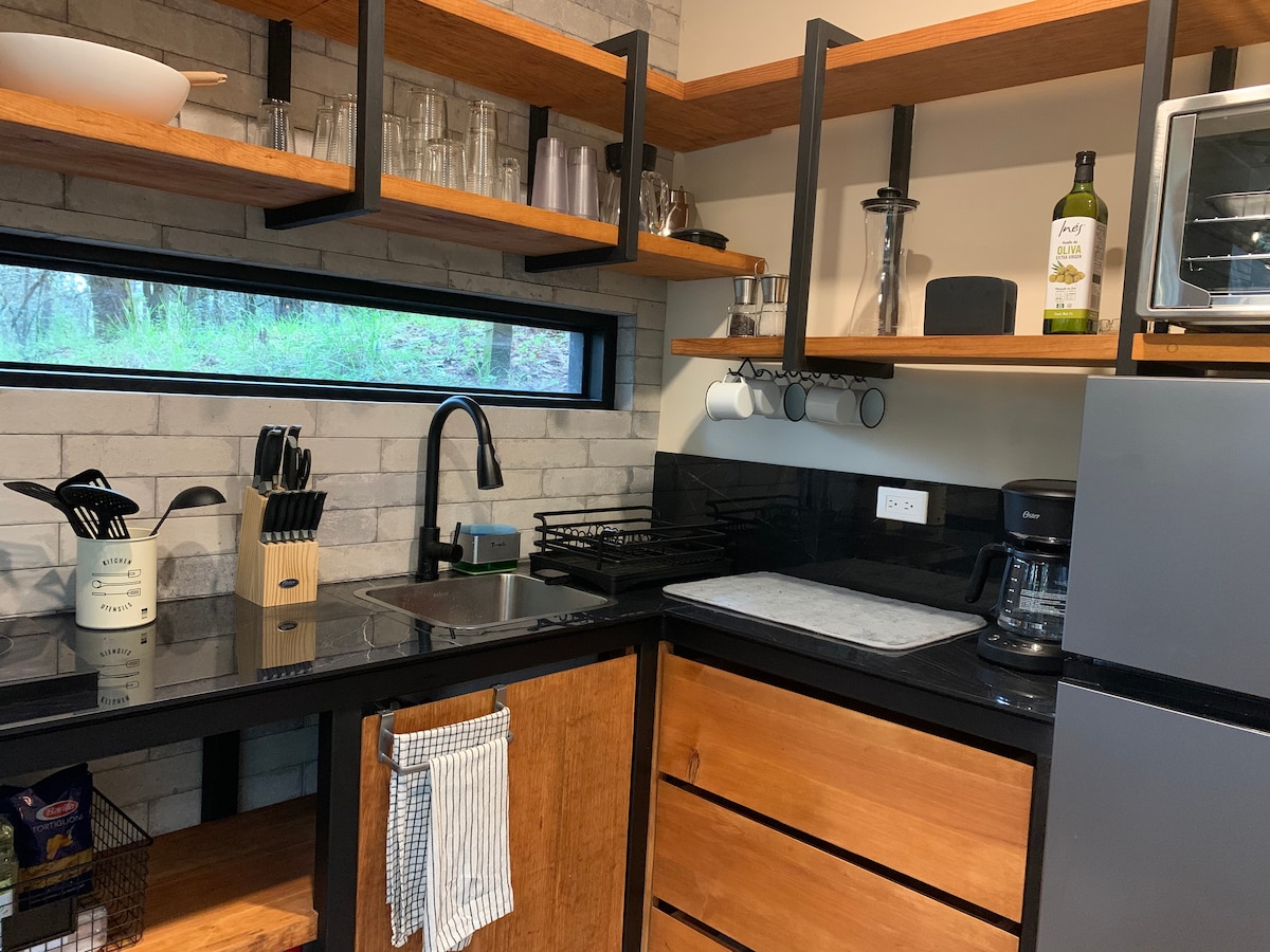 Namas pastatytas iš dviejų jūrinių konteinerių, suprojektuotas šiuolaikišku stiliumi ir su dideliais langais, kad būtų galima mėgautis vaizdu į šiai vietovei būdingą gražų ąžuolyną ir pušyną. Puikiai tinka norint atitrūkti nuo miesto, pailsėti, gaminti skanų maistą, leisti laiką su šeima ir mėgautis naktimis gamtoje. Ši vieta puikiai tinka, jei mėgstate gamtą ir ramybę. Tai nėra idealus variantas, jei ieškote itin lengvai pasiekiamos vietos, atvykstate labai vėlai arba nenorite jokių paslaugų (pavyzdžiui, mieste).