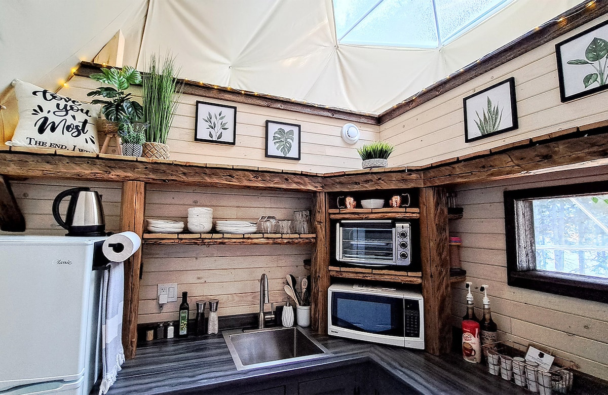 Viešnagės trunka mažiausiai 2 naktis. Atvykimo dienos PIRMADIENIS, TREČIADIENIS ir PENKTADIENIS Quisibis Dômes mūsų glempingo išvykos gamtoje leidžia jums patirti laisvę, gijimą ir įkvėpti jus vėl užmegzti ryšį su savimi ir būtiniausiais patogumais. Savo privačioje terasoje rasite visus mažo kotedžo patogumus, pilną virtuvę, modernų vonios kambarį, taip pat sūkurinę vonią ir dar daugiau.