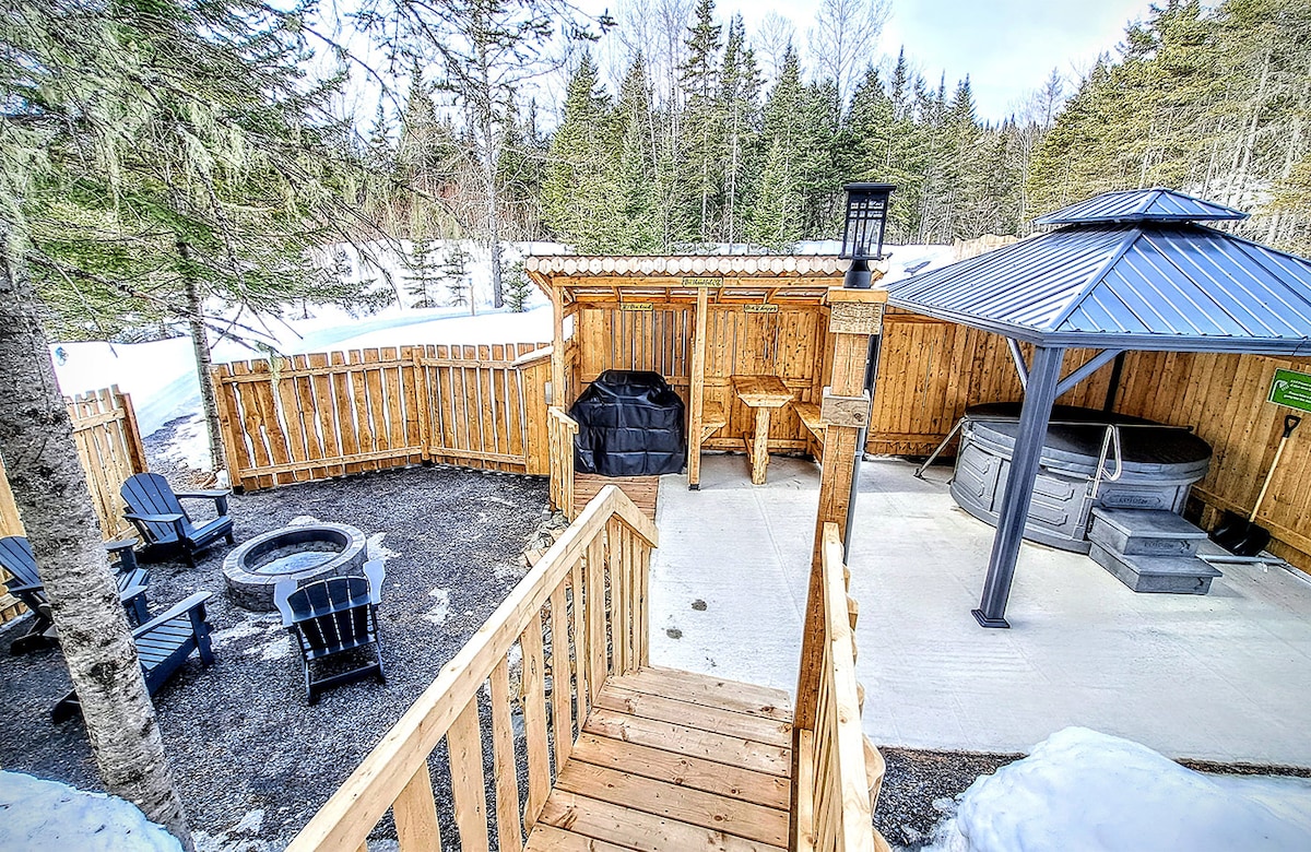 Nice cozy little cottages that sleep up to 4 people. The cottage is fully equipped with a full-size refrigerator, microwave, 10-cup coffee maker, pots and pans, utensils, towels, bedding, and a BBQ with propane. Each cottage has an air conditioner, picnic table, chairs, and a fire pit. About 8 minutes from the Grand Falls Gorge, come enjoy a refreshing swim in our artificial lake or splash in our water slides. Go on an adventure and test your agility on the Wibit inflatable water course.
