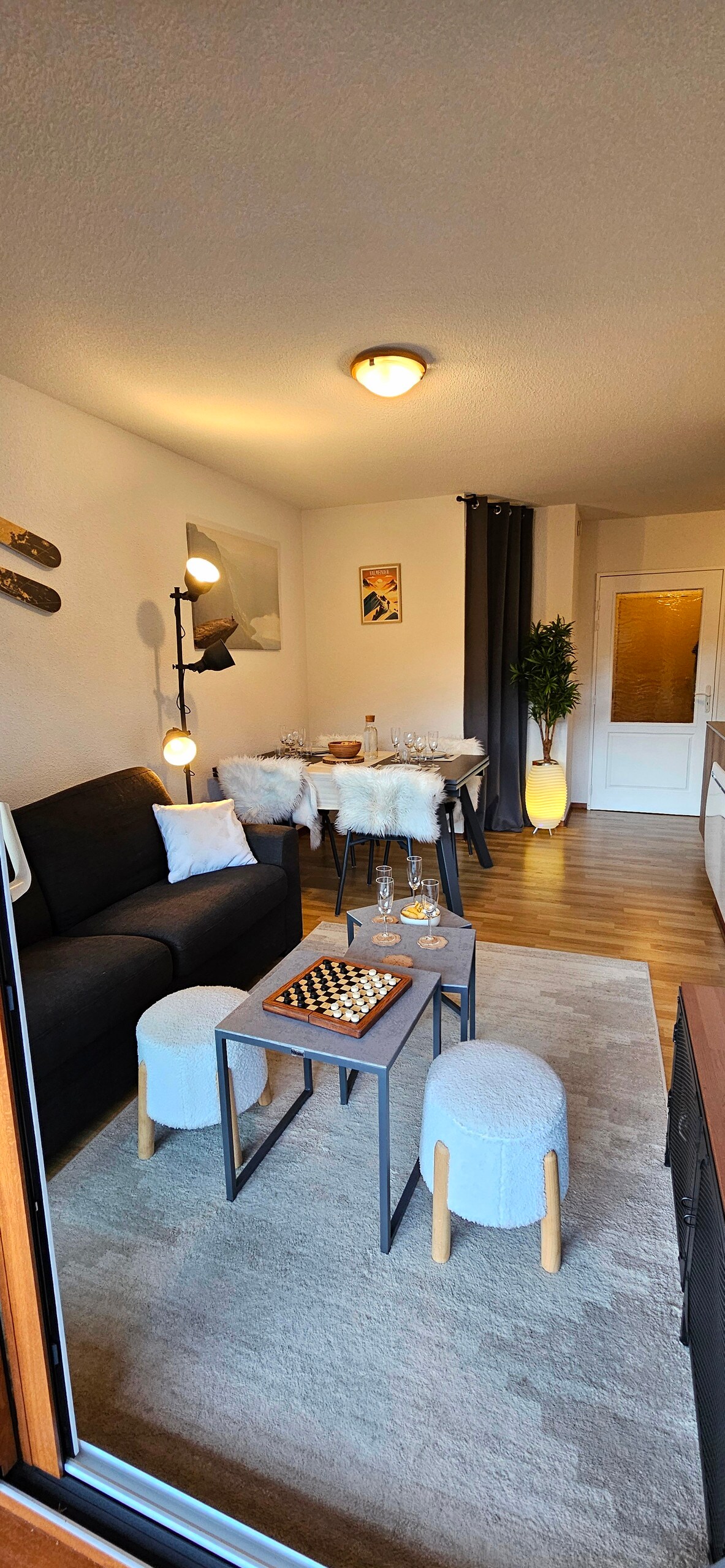 Gražus 50 m² dvivietis namas, visiškai atnaujintas paskutiniame pirmame aukšte esančio pastato aukšte, atsuktas į pietus ir nuostabius kalnų vaizdus. Lauko šildomas baseinas vasaros sezono metu Įrengta lovelė ir aukšta kėdutė. Restoranas pastate, būtiniausių prekių parduotuvė už 100 m ir kurorto centras 5 min. pėsčiomis arba maršrutinis autobusas. Valymas yra papildomas (50 €), kurį reikia paprašyti viešnagės pradžioje.