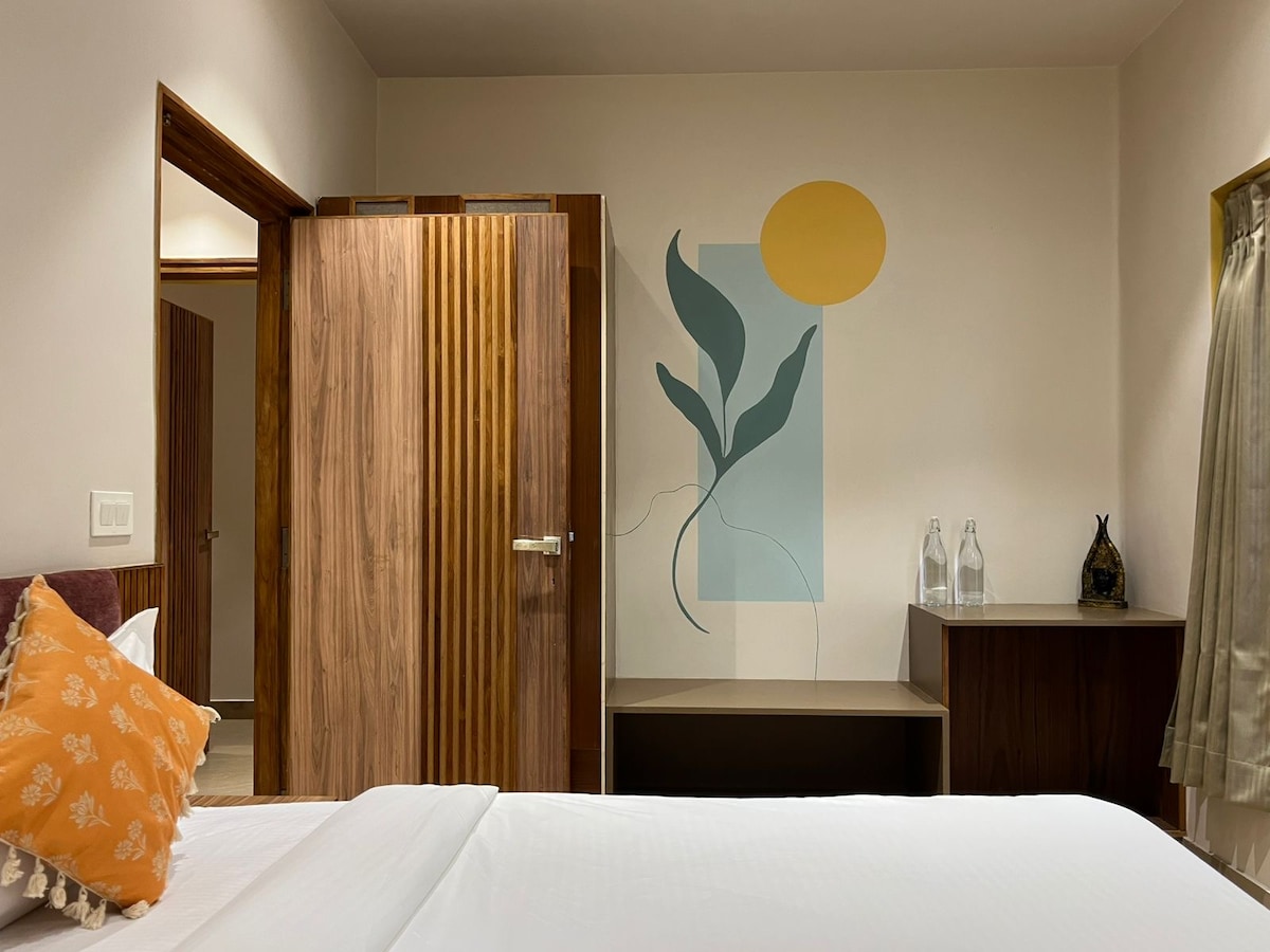 Get a 5 star hotel room feel in a Homestay ! Includes- - Wardobe, luggage rack & study table with high speed WIFI in room. -A dry kitchen equipped with Mirco, fridge , induction, kettle, all cutleries, no sink - Separate main door key for self entry/exit anytime. - A seating lobby (4 pax), Shared with 1 more room on the floor . -Attached Bathroom - Hold/ Cold water supply - AC - Access to Terrace - Caretaker facility available at property for cleaning /maintenance
