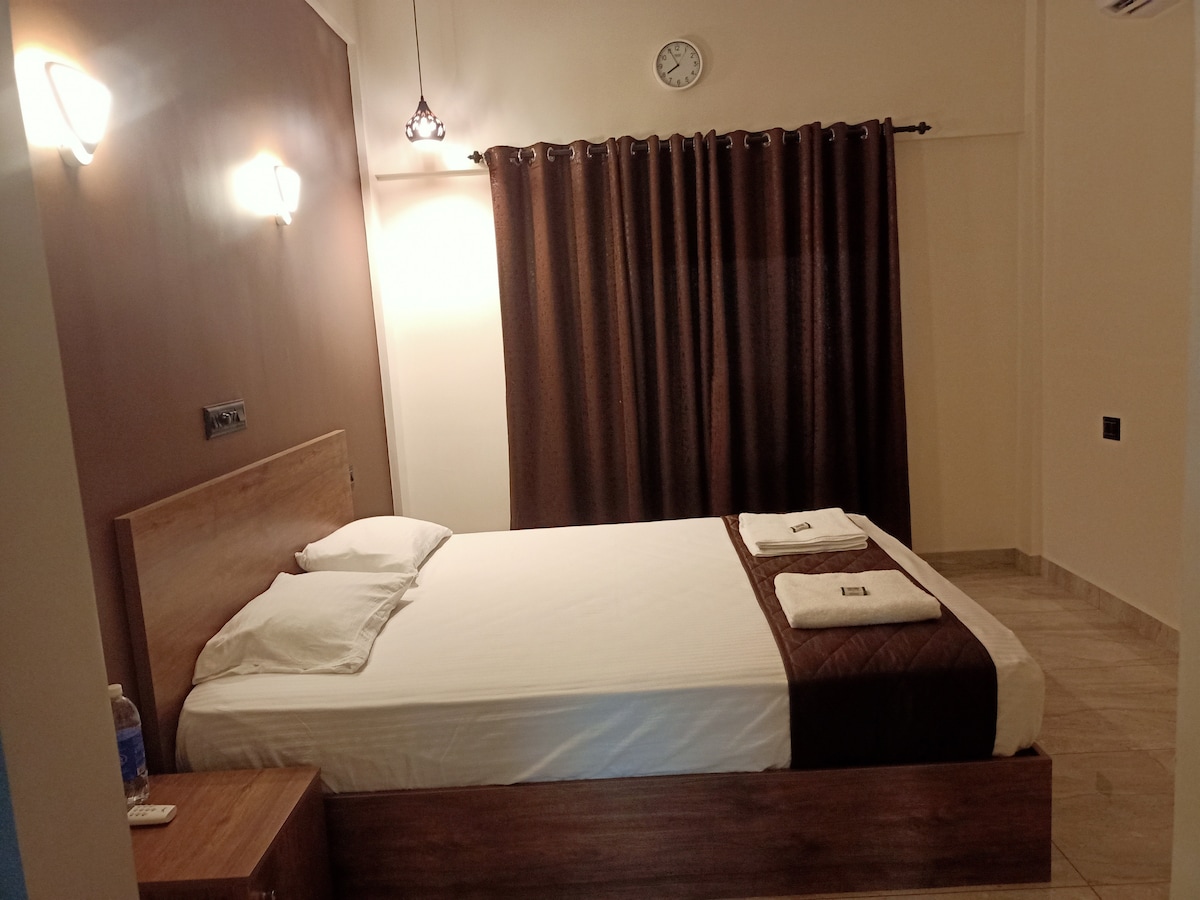 Elegantiškas butas netoli infoparko | Jūsų ramūs namai toli nuo namų Butas naujai įrestauruotas, interjeras baigtas 2025 m. spalį. *Pagrindinis miegamasis* - Karališko dydžio lova - Prie namo prijungtas balkonas su vaizdu į miestą. - Privatus vonios kambarys - Oro kondicionierius *Svetainė* - 50 colių išmanusis televizorius [įskaitant „Prime“, „Netflix“, „Hotstar“] - Didelės spartos belaidis internetas [100 MBPS] - 3-jų vietų sofa - Prie namo prijungtas balkonas su vaizdu į miestą. *Virtuvė* - Modulinė virtuvė - Šaldytuvas - Virdulys - Su stalo įrankiais