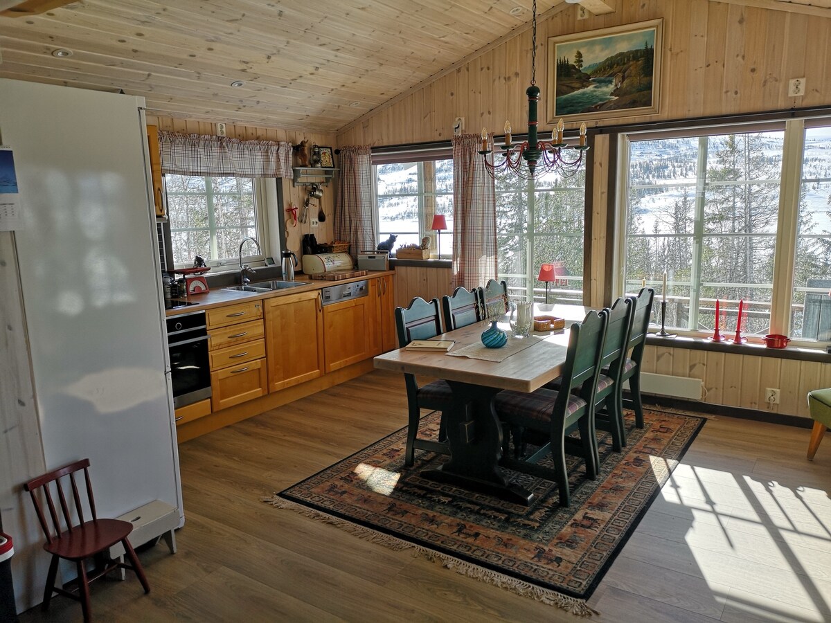 Patirkite komfortą ir modernų dizainą mūsų erdvioje trobelėje su įspūdingais Jotunheimeno vaizdais. Puikiai tinka grupėms ir šeimoms, norinčioms išskirtinių įspūdžių, 30 min. nuo Hemsedalio. Vieta 10 svečių, 5 miegamieji, 2 vonios kambariai. Didelė svetainė su židiniu ir langais nuo grindų iki lubų. Pilnai įrengta virtuvė ir ilgas stalas maloniam valgymui. Slidinėjimas ir artumas žygių takams, žvejybos vandenims ir dviračių maršrutams. Įskaičiuota nemokama automobilio stovėjimo aikštelė, Wi-Fi ir patalynė. Superšeimininkas, turintis 6 metų patirtį. Mėgstamas svečių (įvertinta 5,0 ⭐).