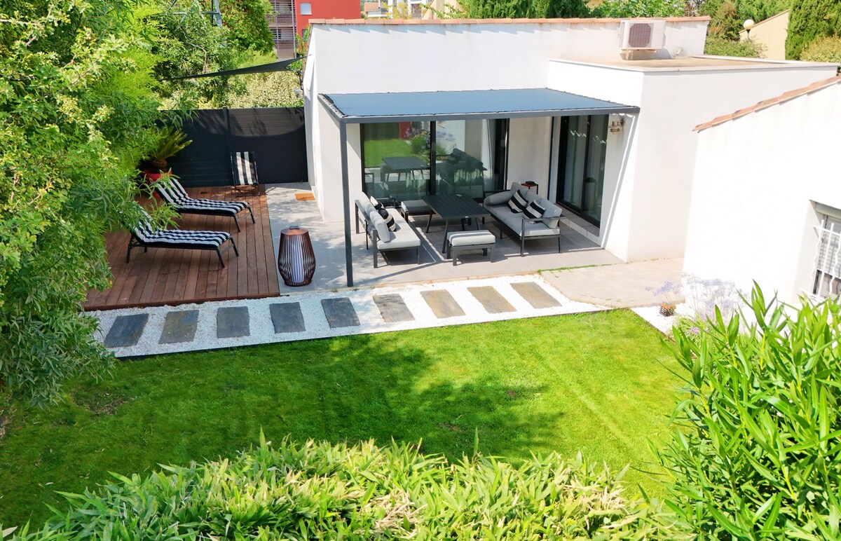2024 m. renovuotas 3 žvaigždučių kotedžas 2 aukštuose, esantis mažame ramiame akligatvyje. Ideali geografinė vieta aplankyti visas turistines vietas: 9 minutės nuo Provanso Ekso, 30 minučių nuo Marselio, 40-45 minutės Arlis ir Avinjonas, 35/40 minutės nuo Alpių (St Rémy de Provence, Les Baux de Provence) 30 minučių nuo Cote-Bleue. TGV ir oro uosto traukinių stotis - už 20 minučių kelio. Vakarėliai ir augintiniai NEGALIMI. RŪKYTI DRAUDŽIAMA