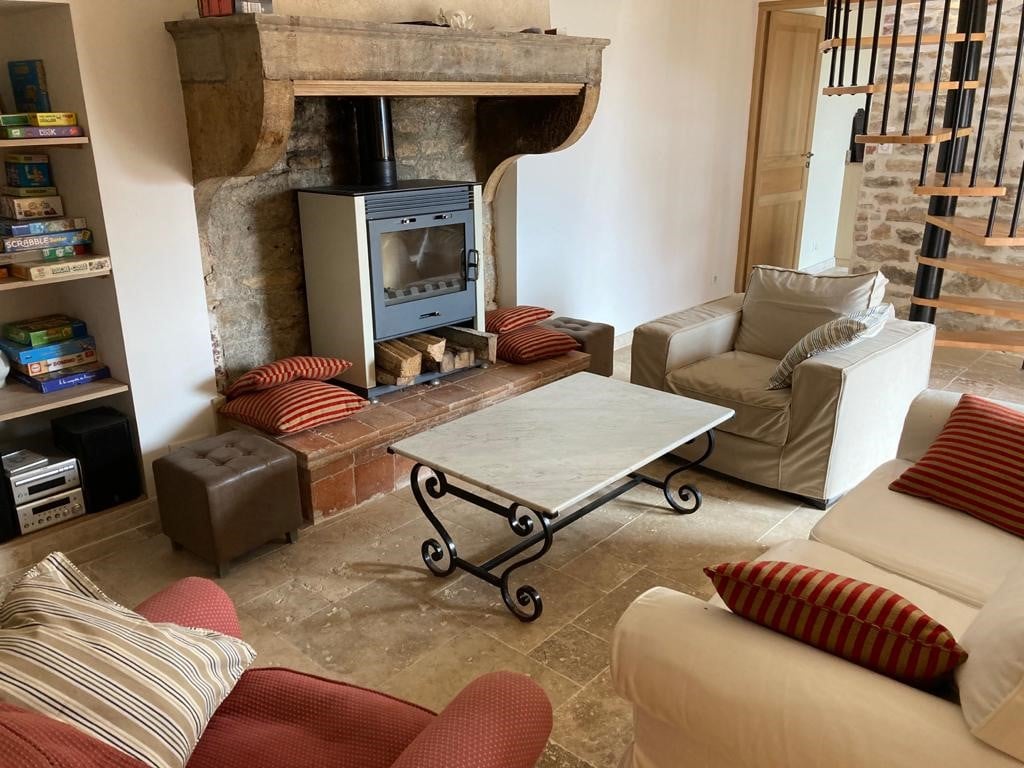 Mūsų kotedžą iš dalies atnaujinome, kad jis taptų svetinga ir atpalaiduojančia vieta. Ši sena klėtis, kurioje mano senelis ir tada mano tėtis spaudė derlių, nuo to laiko lieka spaudos varžtas, kuris išdidžiai stovi svetainės centre, ant grotelių. Senojo pečių žavesys su šiuolaikinių medžiagų komfortu, tikimės, kad čia rasite ramybės prieglobstį, kad galėtumėte įkrauti baterijas. Mūsų nedidelis kaimelis yra Burgundijos kaime. Automobilių stovėjimo aikštelė