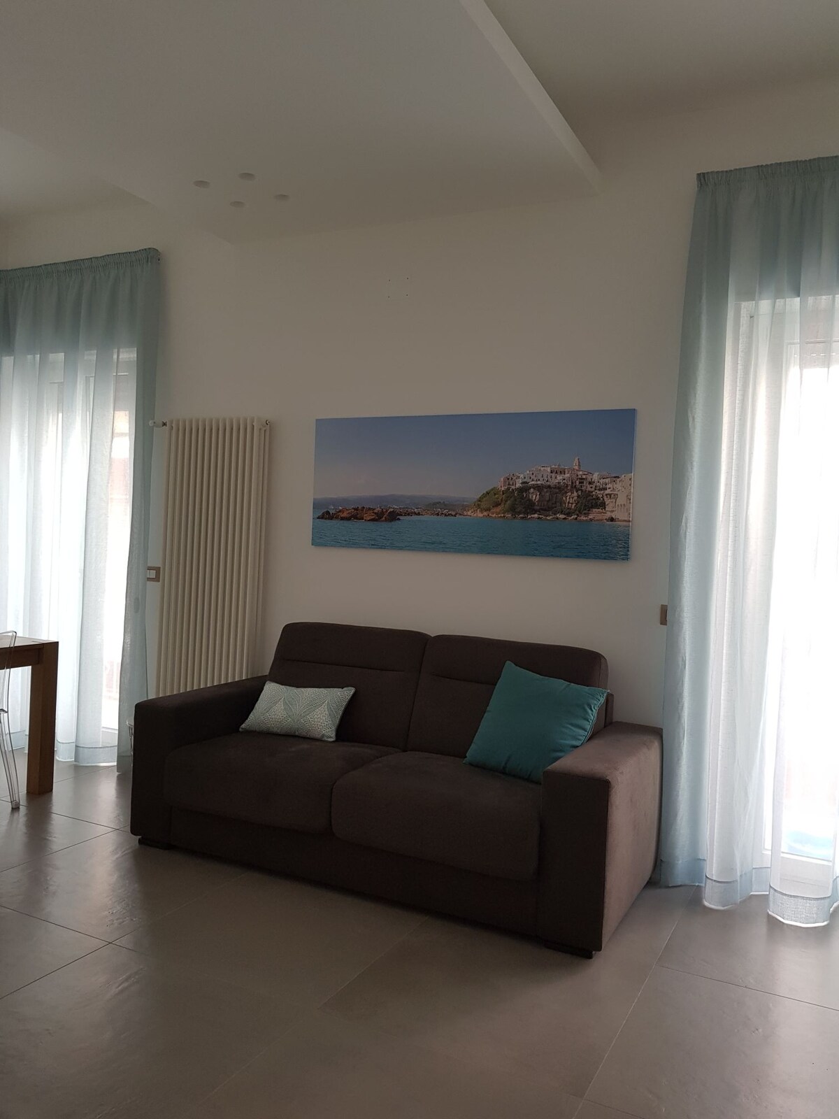 Nuomojamas butas Vieste, esantis Piazzale Aldo Moro, 24 m nuo Lungo Mare Europa. 50 kvadratinių metrų butas yra trečiame daugiabučio be lifto aukšte ir jį sudaro du miegamieji, iš kurių vienas yra dvivietis, vonios kambarys su dideliu dušu, skalbimo mašina ir visi patogumai, virtuvė su prietaisais, 40colių televizorius ir veranda su vaizdu į kaimą bei oro kondicionierius. Valymo išlaidos, mokėtinos atvykus (50 €) Teritoriją puikiai aptarnauja turgūs, kepyklos ir barai. CIS :FG07106091000019814