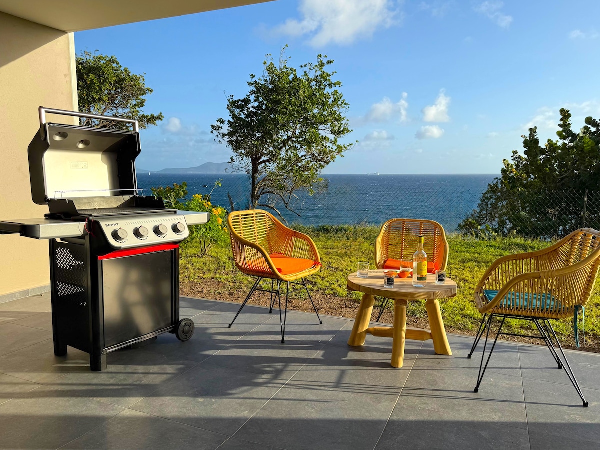 Vivez au rythme de la mer dans ce logement à la décoration raffinée. Profitez d'une vue époustouflante sans aucun vis-à-vis depuis le salon, la terrasse ou le coin jardin de ce T3 neuf. L'archipel des Saintes, l'une des plus belle vue de la Guadeloupe s'offre à vous de façon majestueuse. Au petit déjeuner, admirez le vol libre des frégates. En novembre 2026 vue direct sur la route du rhum et ses superbes bateaux. Une plancha est disponible pour vos grillades en extérieur. La nature vous attend.
