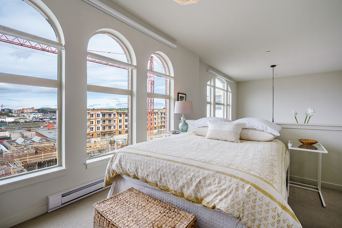 Nuostabus butas su vaizdu į vandenyną šiame ramiame ir centre esančiame rojuje Vankuverio saloje. 2 miegamieji/ 2 vonios kambariai, terasa, kūno rengybos centras, pirtis ir požeminė automobilių stovėjimo aikštelė. Pasivaikščiokite po paukščių prieglaudą arba pasivaikščiokite palei vandenyną. Netoli populiariausių lankytinų vietų: Butchart sodų, Butterfly sodų ir Sidnėjaus centro. Minutės nuo oro uosto, keltų, restoranų ir tik 20 minučių kelio iki Viktorijos centro. Šiuose namuose, esančiuose toli nuo namų, yra skalbykla, židinys ir virtuvė.