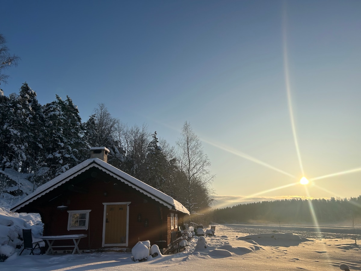 Patirkite žiemą ir šiaurės pašvaistę XIX a. trobelyje