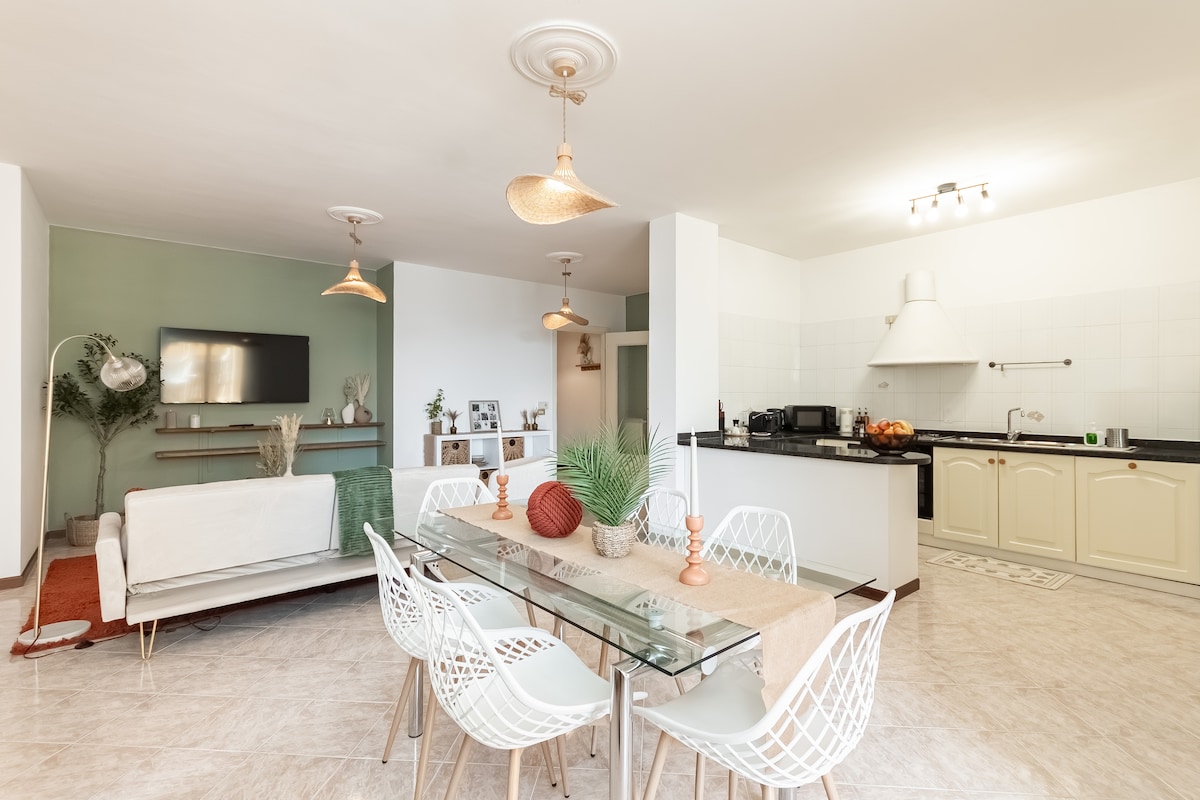 Jaukus Viduržemio jūros stiliaus butas, idealiai tinkantis tiems, kurie ieško poilsio ir komforto. Sudaryta iš: • Įėjimo salė su paltų lentyna • Šviesi atviro plano svetainė su pilnai įrengta virtuve • Vonios kambaryje yra sūkurinė vonia • Vonios kambaryje yra dušas • Du miegamieji su dvigulėmis lovomis ir oro kondicionieriumi su ORO VALYMO SISTEMA • Dvi terasos, viena įrengta vakarienei lauke ir su poilsio zona Strateginė vieta, vos už 200 m nuo jūros ir miesto centro su parduotuvėmis, restoranais ir barais.