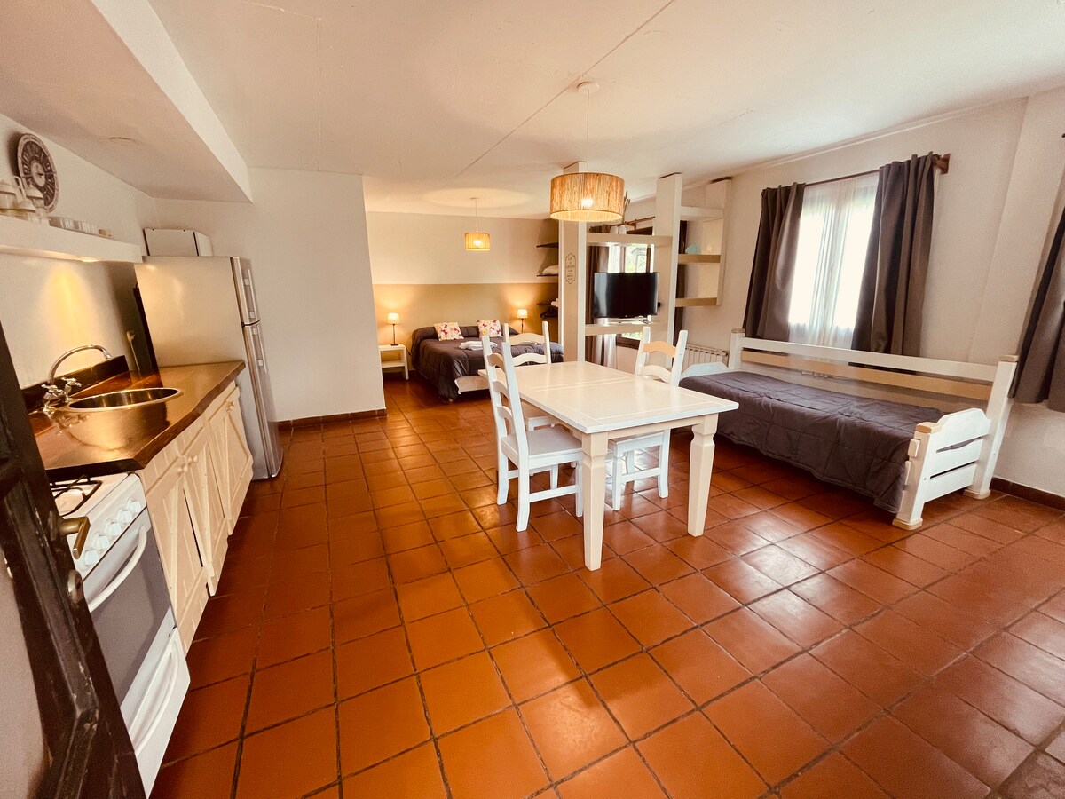 32 m2 loftas. Pagrindinis kambarys: svetainė / valgomasis sujungtas su virtuve. Sofa-lova 1 asmeniui ir dvigulės lovos pagrindas Įrengta: - Pilnai įrengta virtuvė, šaldytuvas su šaldikliu ir mikrobangų krosnelė. - Vonios kambarys su vonia ir plaukų džiovintuvu - TV - Malkomis kūrenamas židinys - Terasa su atskiru griliu - Centrinis šildymas.