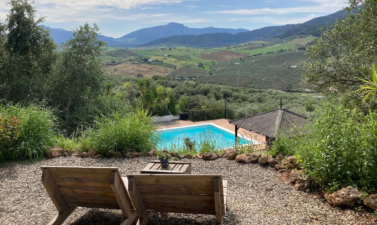 Gražus kaimiškas namas, kuriame galėsite mėgautis pora gamtos apsuptyje ir šiuolaikiškų namų komfortu. Įspūdingi vaizdai iš visų jį supančių terasų ir sodų su karštu vamzdeliu, Balio lova, hamakais, stalais su kėdėmis ir akmeniniais suolais. Jis yra kraštovaizdžio rezervate, kuriame gausu paukščių, kalvos viršūnėje, šalia Caminito del Rey ir El Torcal bei Andalūzijos centre aplankyti kitus miestus. Džiaugiamės galėdami pasidalyti šiuo mažu rojumi su savo svečiais!