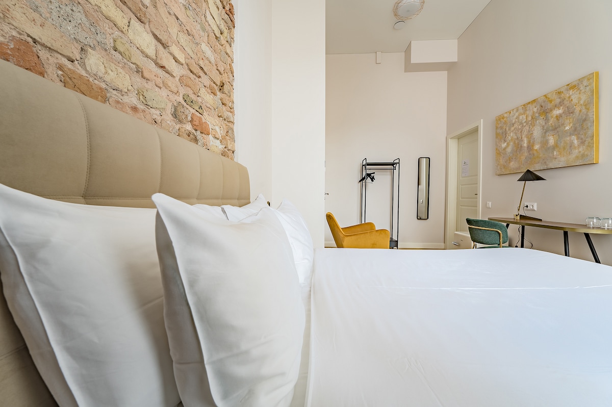 Stay in the heart of Vilnius old town, just 30 meters from the Town Hall. The renovated historic building features modern amenities, comfortable furnishings, and a warm decor - natural, earthy tones dominate. Perfect for couples or solo travelers, ideal location for exploring the city's attractions. Book now and enjoy a wonderful time in Vilnius!