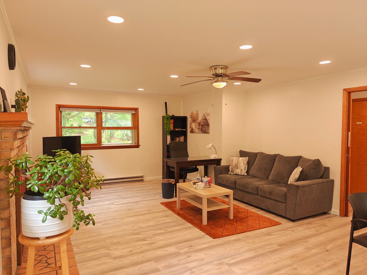 Mėgaukitės patogia viešnage visu privačiu 2-uoju namo aukštu. Turėsite galimybę naudotis 3 dideliais miegamaisiais, kuriuose gali miegoti 6 asmenys. Yra 2 kambariai su plačiomis dvigulėmis lovomis ir 1 dviejų lovų kambarys, bendra virtuvėlė ir didelis vonios kambarys. Grindyse yra: *Roku televizoriai su transliavimo parinktimis *Oro kondicionierius šiltoms dienoms *Elektriniai židiniai kiekviename kambaryje jaukioms naktims *Didelius langus visoje erdvėje, kad būtų natūrali šviesa *Lubiniai ventiliatoriai *Patogūs miegamieji su plačiomis arba dviem atskiromis lovomis, minkšta, viešbučio kokybės patalyne ir antklodėmis *Svečių mėgstamiausia