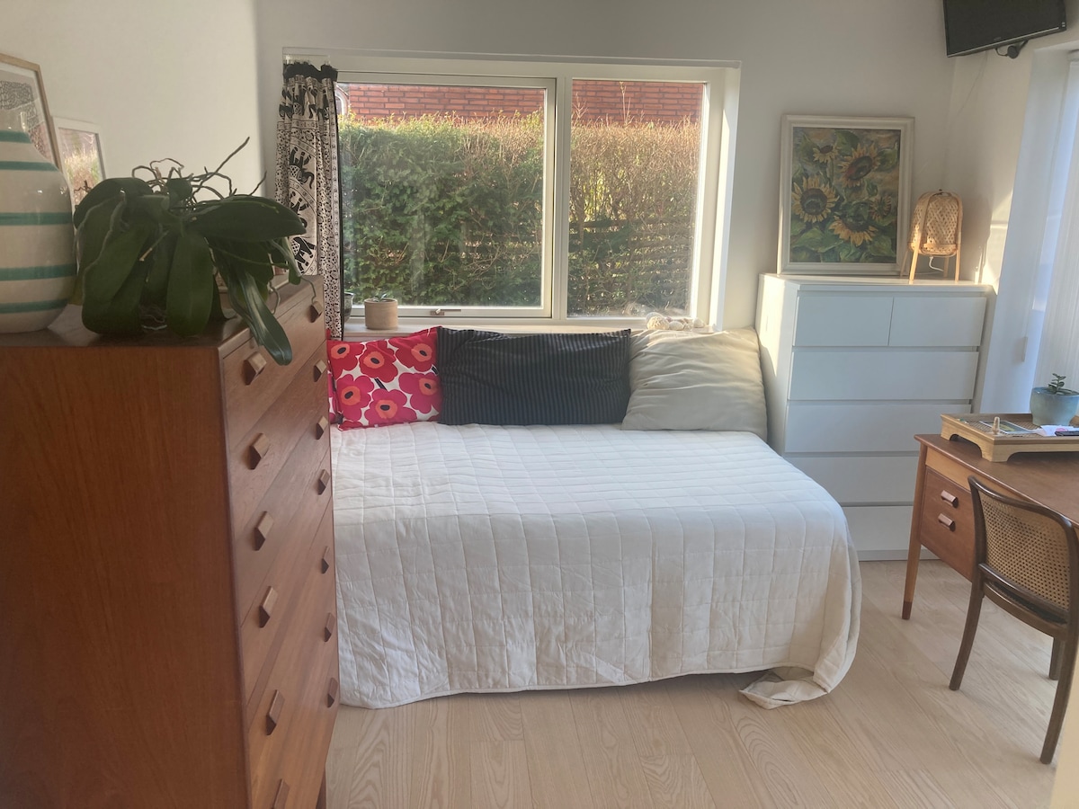 Pasinerkite į gerą šio ramaus ir centre esančio namo gyvenimą. Šviesūs svečių namai už šeimininko namo su saulėtu kiemu, 200 metrų iki miško ir 1,5 km iki plaukimo ežero. Čia rasite kaimo idilę netoli apsipirkimo ir miesto bei tuo pačiu metu mažiau nei 20 minučių traukiniu iki Kopenhagos. Papuoštas daugiausia dėmesio skiriant atsipalaidavimui ir komfortui po ilgos ekskursijos su, be kita ko, su didele dvigule lova, pūkinėmis antklodėmis, pilnai įrengta virtuve ir dušo vonios kambariu su nemokamais tualeto reikmenimis.