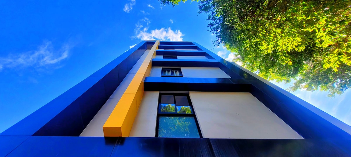 „Sveiki atvykę į tobulą kelionę! Kambariai yra erdvūs ir juose yra patogios lovos su aukštos kokybės paklodėmis, užtikrinančiomis gerą nakties miegą. Vonios kambarys yra modernus, jame yra karštas dušas ir minkšti rankšluosčiai. Jūsų patogumui bute taip pat yra visa virtuvė su visais reikalingais įrankiais, nemokamas belaidis internetas, oro kondicionierius ir skalbimo mašina. Be to, stogas - puiki vieta mėgautis gamta arba atsipalaiduoti dienos pabaigoje.