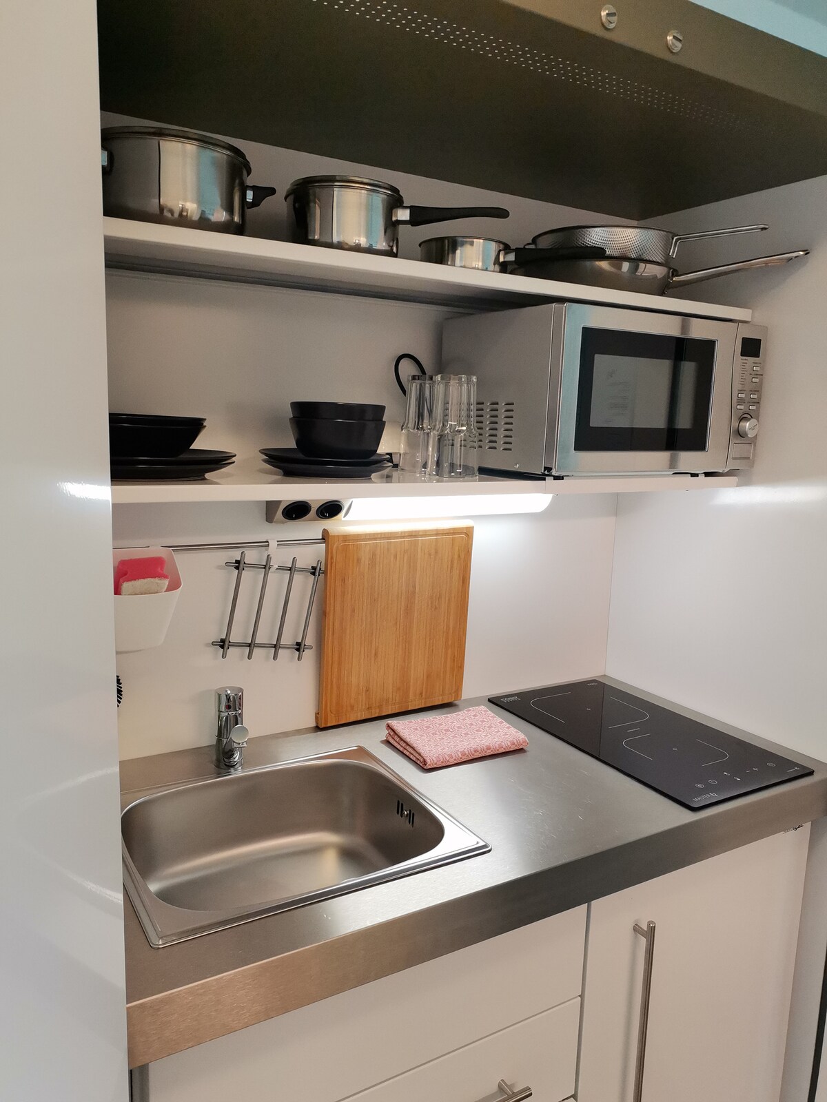 Naudodamiesi SAVARANKIŠKO ATVYKIMO sistema, leidžiame jums atvykti lengvai ir atskirai, naudojant prieigos kodą savo kambaryje ir NEMOKAMĄ požeminę automobilių stovėjimo aikštelę. Saminaparke jūsų laukia 20 studijos tipo kambarių. Įrengta dvigulė lova, sėdėjimo zona ir didelis stalas, spintelė, virtuvė, stalas, internetas, išmanusis televizorius, įėjimas į dušą, didelis veidrodis, taip pat kriauklė ir tualetas.