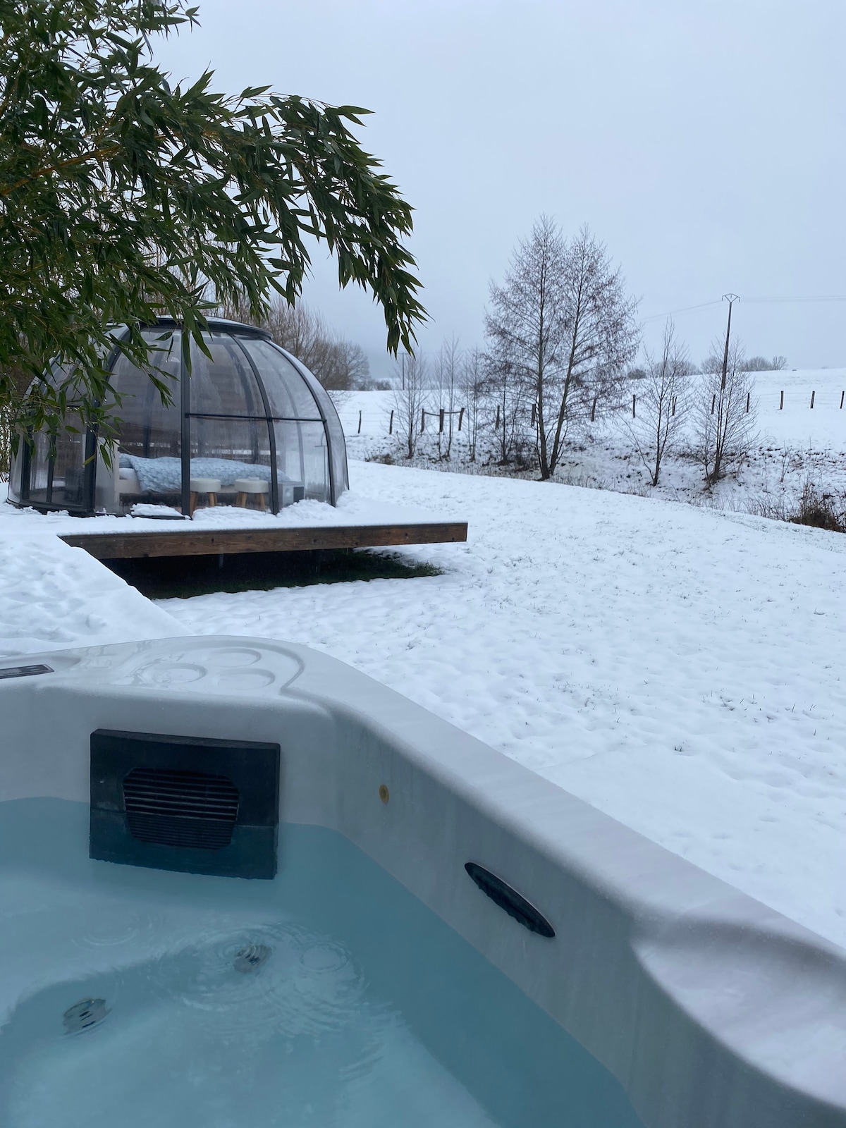 La Bulle des Anges yra skaidrus sfera, kuri laukia jūsų stebuklingai akimirkai, apsuptas žalios erdvės su visiškai privatizuota terasa, SPA ir hamamu... išsaugotoje aplinkoje. Miegokite su galva žvaigždėse, burbule su vaizdu į dangų ir visais viešbučio kambario patogumais. Apsvarstykite saulėlydį, žvaigždes ir saulėtekį auštant burbule, kuris sujungia komfortą ir artumą lauke. Burbulis yra įsimintina patirtis, siūlanti labai prabangų ir žavingą prieglobstį gamtos mylėtojams. Burbulis yra vienvietis, visiškai privatizuotas be jokių priešingybių. Privatus SPA yra laisvai pasiekiamas ir be jokių laiko apribojimų... taip pat visa kita įranga, greta esanti terasa, vonios kambarys, hamamas yra privatus ir kt. Raktų perdavimas atliekamas rankomis. Gyvename netoli apgyvendinimo vietos, teikiame pagalbą esant poreikiui visos viešnagės metu. Įsikūręs gražaus Illoud kaimo aukštumose, esančiame Haute-Marne departamente ir Grand-Est regione, pačioje gamtos širdyje, aukštumose. Lauko automobilių stovėjimo aikštelė. Paprašius: siūlau neprivalomus naminius meniu, kuriuos reikia rezervuoti iš anksto, jei norite. Taip pat keletas kitų variantų, pvz., romantiška dekoracija su rožių žiedlapiais ir LED žvakėmis, kad būtų jaukesnė ir kokoniškesnė atmosfera, pvz.,...