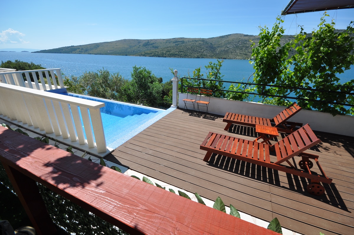 Villa Belvedere vieta yra puikus atspirties taškas Dalmatijai. Puiki vieta prie jūros gražioje įlankoje su nuostabiais akmenukų paplūdimiais, vos už 5 km nuo UNESCO miesto Trogiro ir už 30 km nuo UNESCO miesto Splito. Mūsų vila, nedidelis rojus vaizdingoje Dalmatijos pakrantėje, yra išskirtinė atostogų rezidencija, skirta ramybės, gamtos, švaraus oro, švarių paplūdimių ir netoli turistų lankomų vietų, gražiausių Dalmatijos miestų, paplūdimių ir nacionalinių parkų.