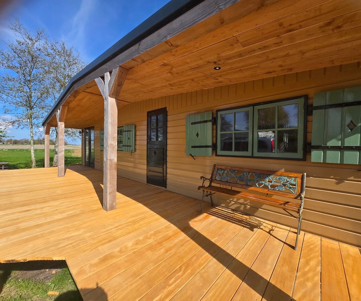 Sveiki atvykę į šį erdvų poilsio namelį 4-6 žmonėms, kuriame susitinka komfortas ir ramybė. Šviesi svetainė su sofa-lova suteikia prieigą prie saulėtos terasos su gražiais vaizdais į Fryzijos kaimą. Yra du miegamieji: vienas su dvigule lova, o kitas su dviaukštėmis lovomis. Virtuvėje yra indaplovė, kombinuota krosnelė, Dolce Gusto kavos aparatas ir skalbimo mašina. Mėgaukitės gamta ir jauskitės kaip namie šiame gražiame poilsio namelyje.