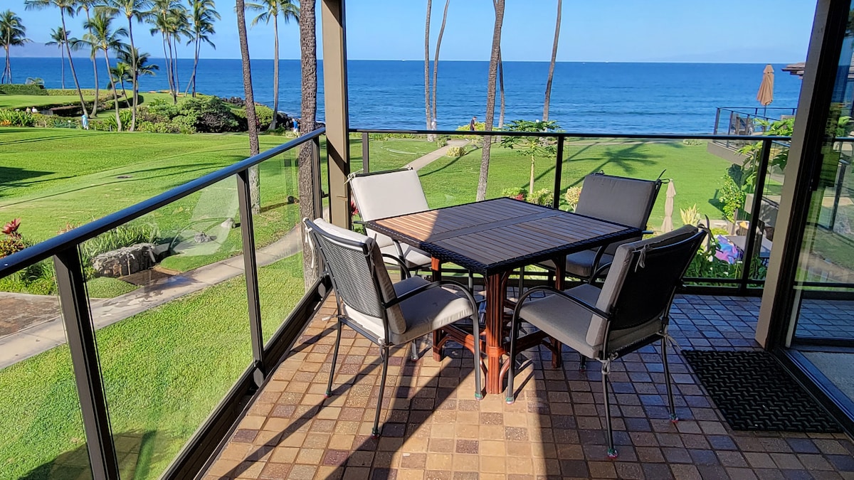 Hawaii License: T-174-283-2640 Full ocean & beach front - all year sunsets. Royal Mauiian - Highly sought location in S. Kihei. Nicely done 1 BR - 1 BTH Nicely furnished, very streamlined open feel. Walk to restaurants, steps to Kam 1 beach, close to shops & activities. Rent a paddleboard, buy Hawaiian memorabilia, or shop at Harvest Moons - close by. Split Air in Bedroom & Living Area. Fully equipped kitchen. In Unit Laundry GET & TAT tax total of 17.75% included in final price.